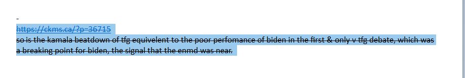 so is the kamala beatdown of tfg equivelent to the poor perfomance of biden in the first & only v tfg debate, which was a breaking point for biden, the signal that the enmd was near.