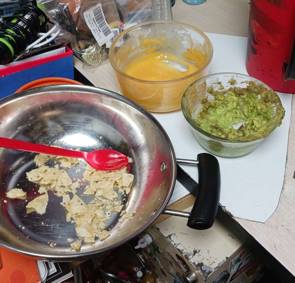 the nacho cheese dip is this low-brow version. and the guac is a bit old, but that’s just sugars browning.