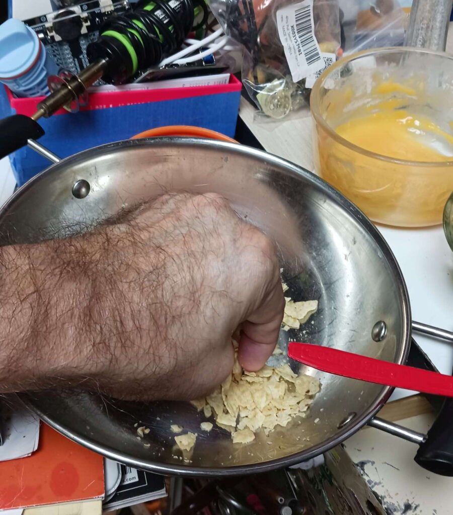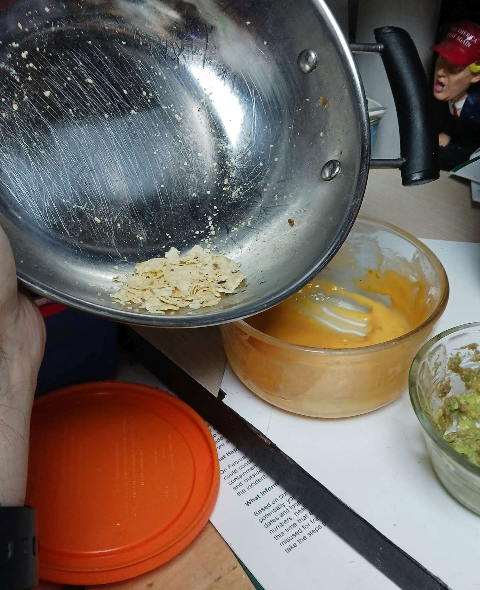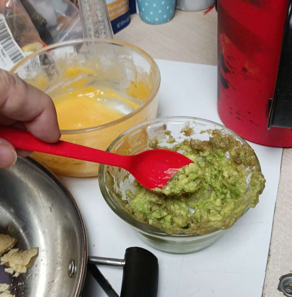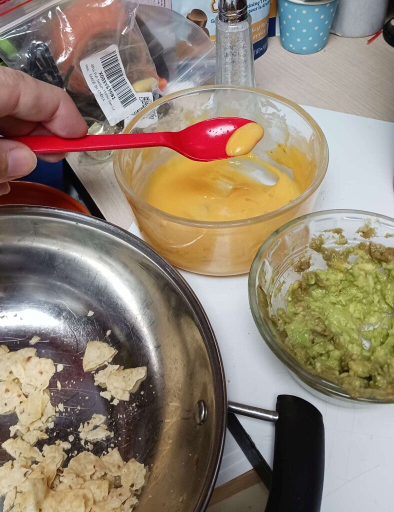 so when you get down to the last chips, on in this case, nacho chips. and the dip(s) are getting low. what do? use a spoon for the dip!