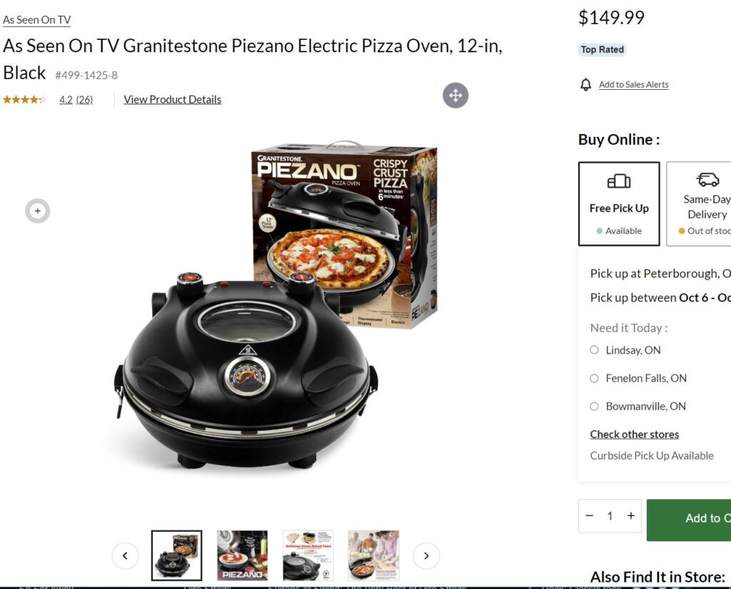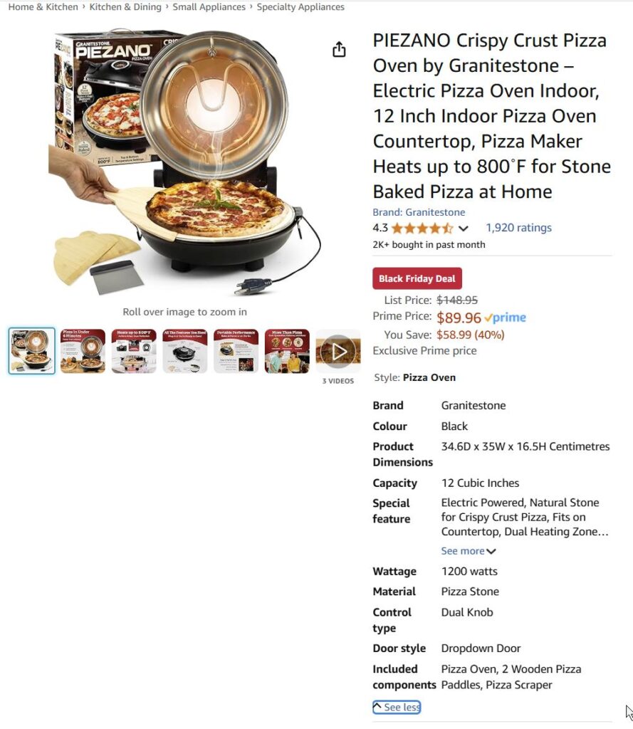 Granitestone Piezano Electric Pizza Oven – does 12″ / 30.5cm pizzas.; haven’t seen many of these on auctions, whereas HB one above is rare/common? i think this ones being hawked on tv channels (perhaps saw when last at mom’s), which is sus, but not disqualifying so.