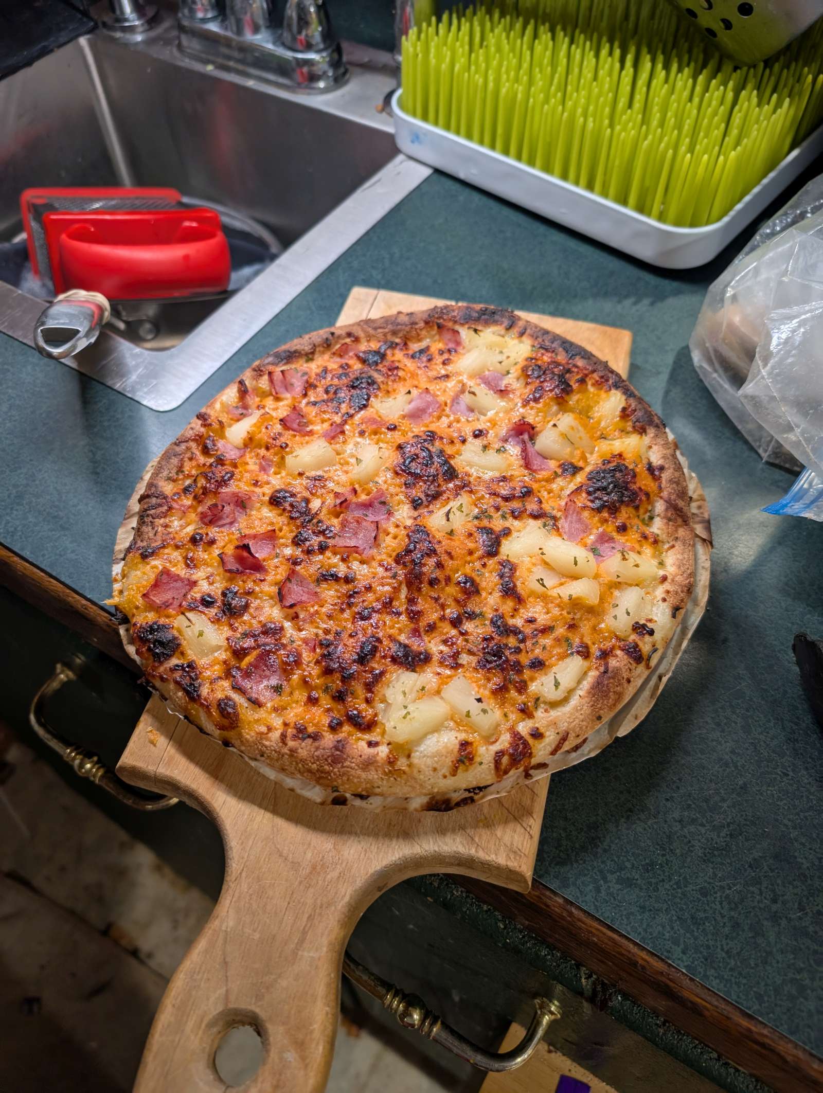 a few eaxmples of pizzas I cooked on this machine. for consitency, these are all Cr. Oekter Casa di Mama, either Hawiian or Pepperoni, thawed beforehand.