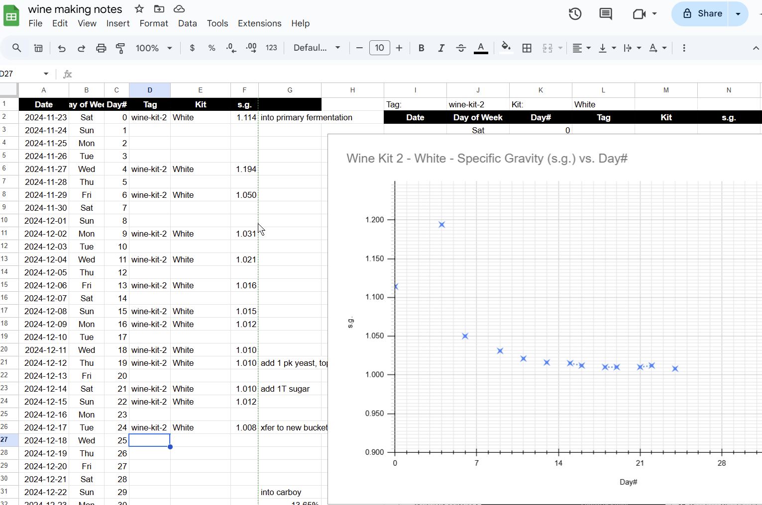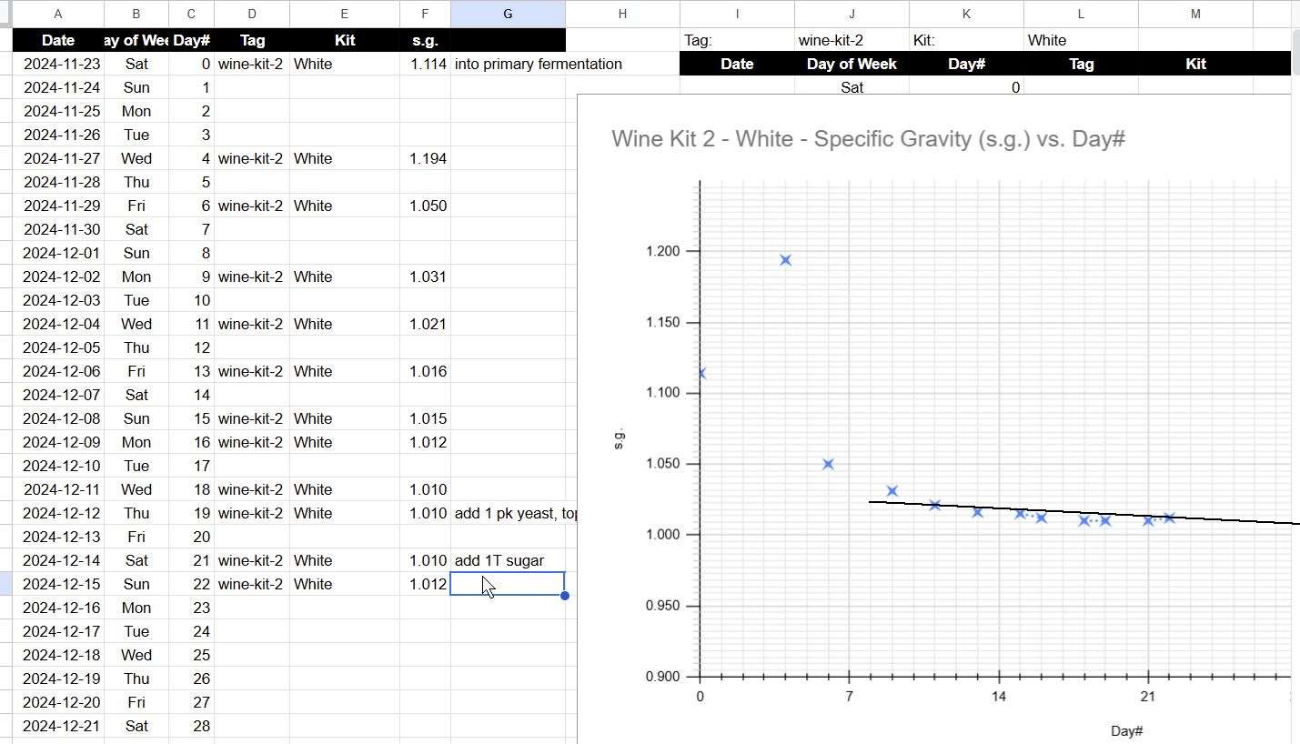 — 2024-12-12 – Thursday – day 19 – added 1pk yeast, stirring gently top only.