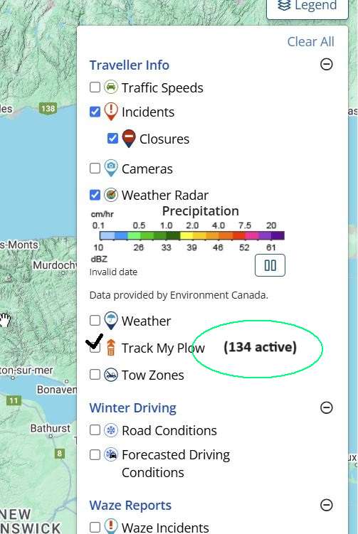 A suggestion: where I have selected to “Track My Plow”, perhaps put the total # of active plows in brackets next to the label. This would actually be a useful proxy for how bad the weather is.