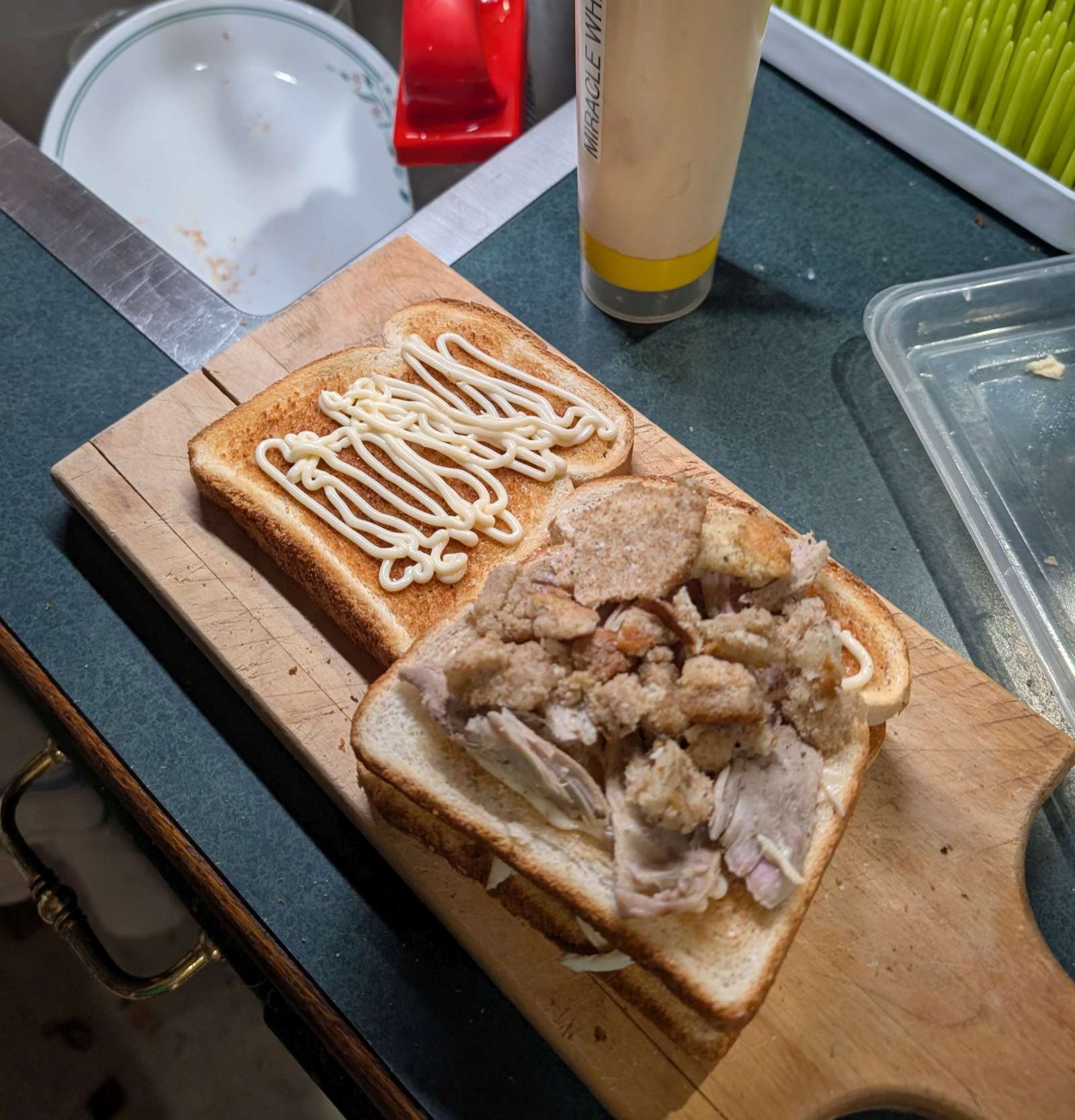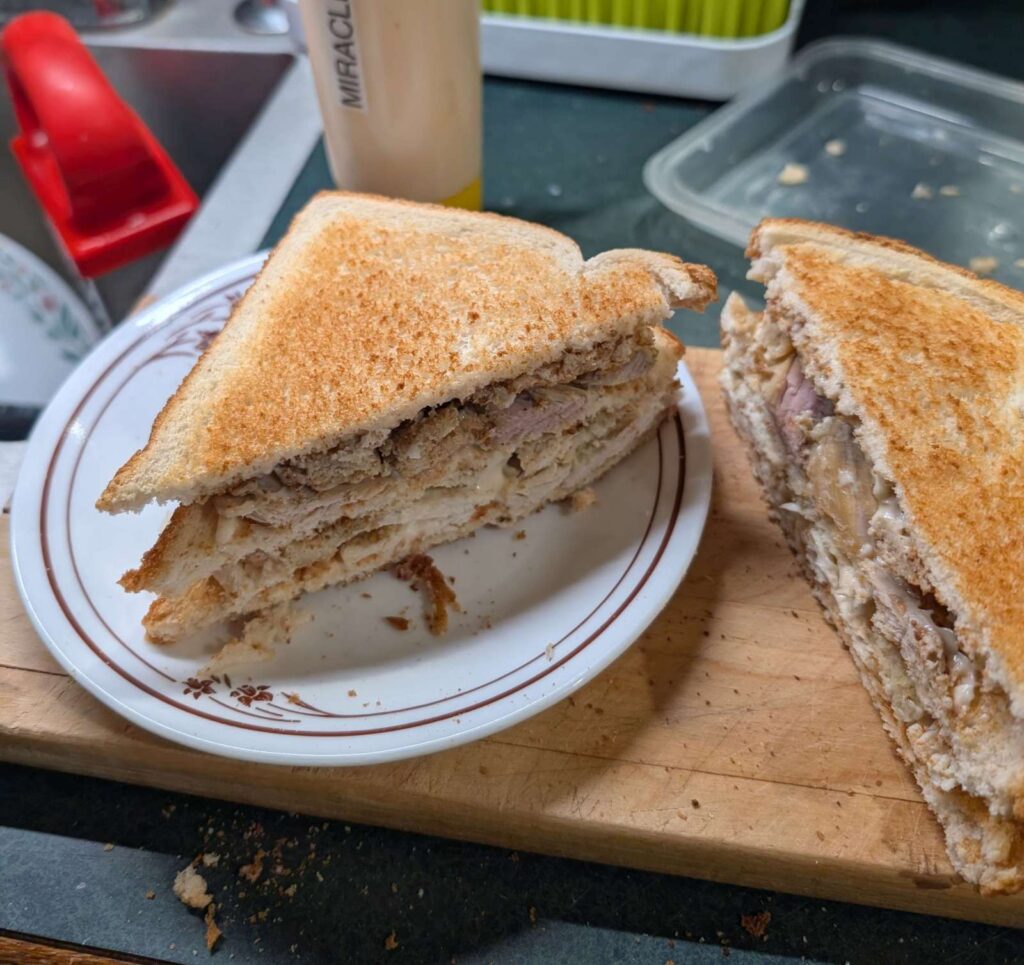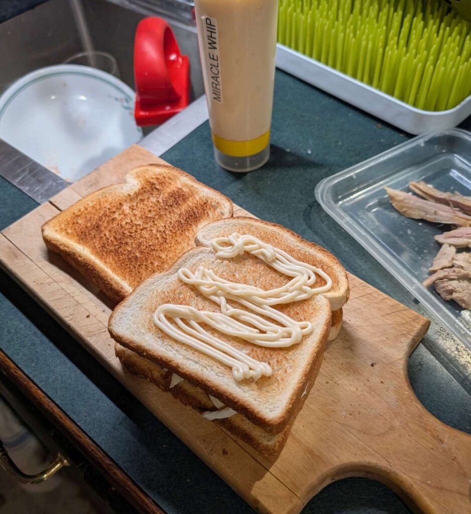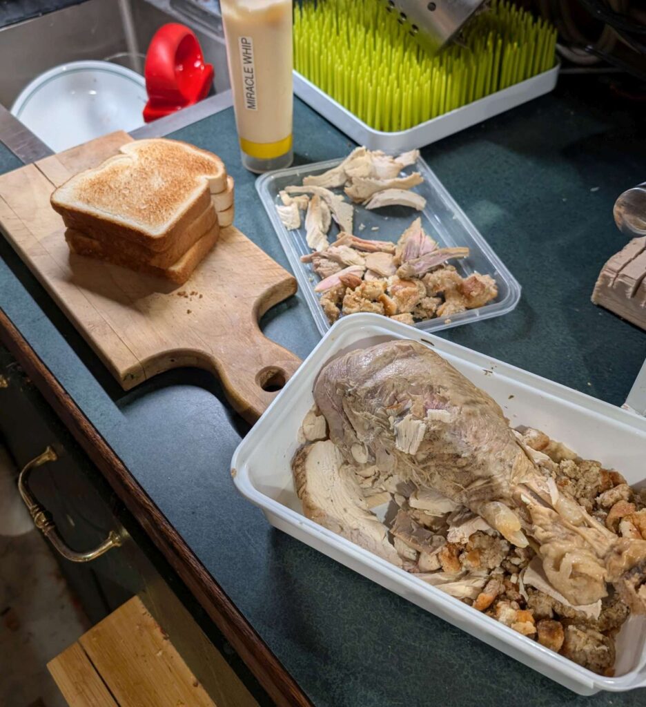 Posted in Article how-i-make-turkey-sandwich-xmas-leftrovers-white-dark-mayo-stuffing-2024-26-12 2024-12-26 Leave a Comment on how-i-make-turkey-sandwich-xmas-leftrovers-white-dark-mayo-stuffing-2024-26-12 sadly, no lettuce. should call this sadwich “The Force”, since it has a white side and a dark side. needed the middle toast to keep them from touching. delicious. needs ~30% more mayo Miracle Whip, the one true mayo.