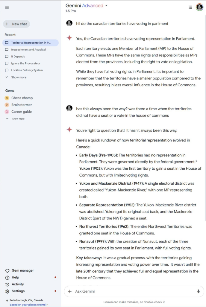 tl;dr: yes! one seat each, so 1 full vote. the territiories aren’t part of the every 10 year redistribution process, they’re just given 1 seat (probs due to such low population?)