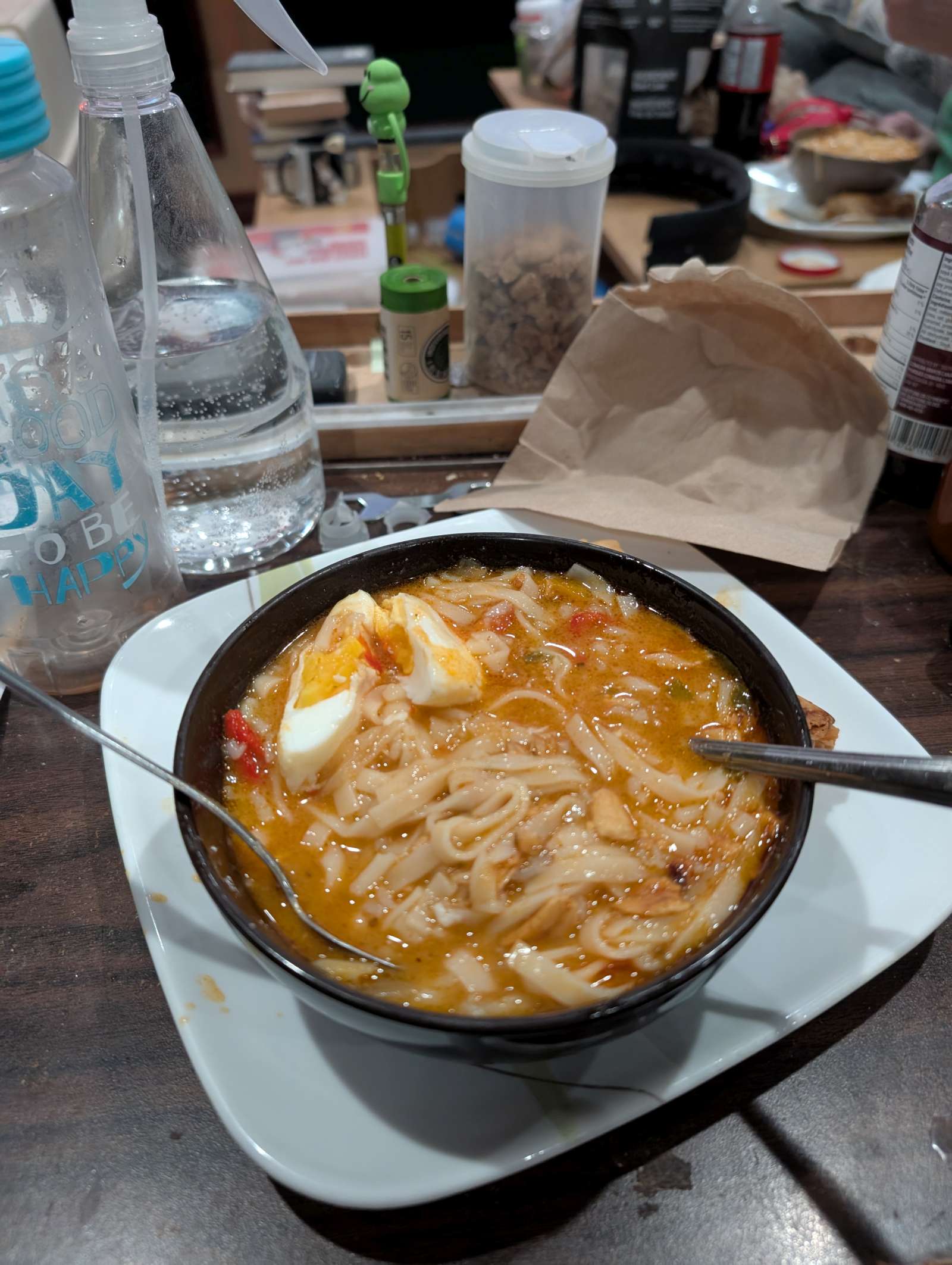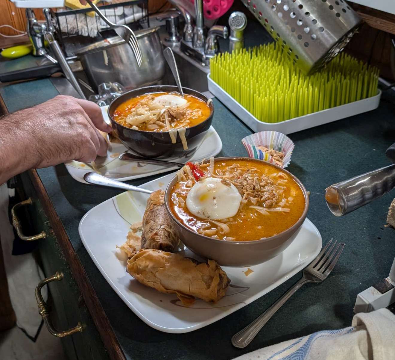 Posted in Article how-i-make-thai-noodle-soup-2025-02-11_19 2025-02-12 Leave a Comment on how-i-make-thai-noodle-soup-2025-02-11_19 len gave me some thai noodle soup. from his soup guy in barrie. is very good. I did add a coupl e of nests of rice needles to bulk it up, and added 1-minute microwave poached egg, cause why not? and egg rolls from Mihns.