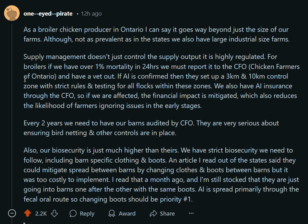 an interesting Reddit post by an alleged ontario chicken farmer: