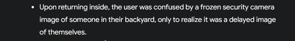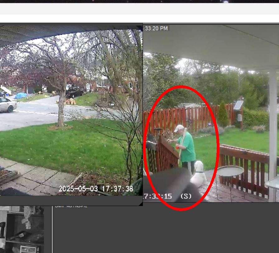 So I just had an interesting issue that I wanted to talk about I was I went out to the garage to do two metro piece of steel tubing to see if it’s so I can start modeling it in the CAD software to try and design the final bits of a chairlift or maybe first just a platform foot platform rest so I went out to the garage with a post it note saying measure steel tube with it and in my hand I had a pencil and I had my tape measure all the things that I probably would have out there but sure enough I was out there without them I would certainly find them not available one of the 25 date measures I own none of them would be accessible anyhow so fully prepared I go out I get the measurements I listen to a few boxes and some stuff it was but tried to focus so came back and I my intention was to find a piece of wood that will simulate the where I’m going to put this steel tube and how I’m going to mount the stairs and how it’s how long it exactly has to be to get a little platform that will be on the floor the foot platform and will become flush with the surface at the top so all I want to do is make some cardboard yeah that’s the point it is so II I’m walking back in the dog is sitting on the on the stairs of the deck and I’m thinking I’ve got my piece of wood turns out one and a half probably a 2 by 2 which is nominated 1 1/2 I think which is the same as the tube within a millimeter so I can I’m I’m hobbling back into the back into the back door home by the dog and when I come back in I noticed my I look in the cameras on my camera’s points at the back deck and I see a guy in with a whitish hat I quick little white hat and a green T shirt on doing something in the backyard and I learned who the **** is that and then I realized holy **** that’s me my camera had frozen as it often does for moments at a time and it captured me walking by the in the view of the camera and I did not realize it until I had to thought about who the **** is that and it’s like it turns out it’s me I managed to kill a print screen of this because I was quickly able to before the camera refreshed to use screenshot to take a picture stint of the screen and again the the ability to take snips the screen is the one of the absolute keys to using this computer thingy