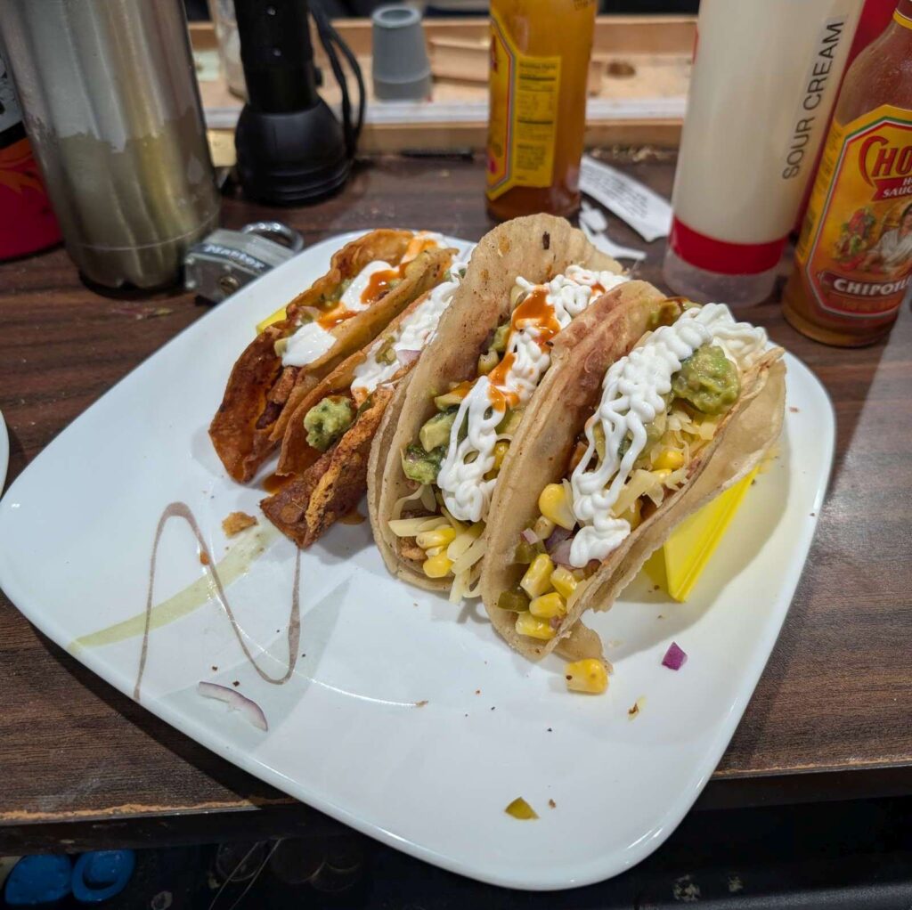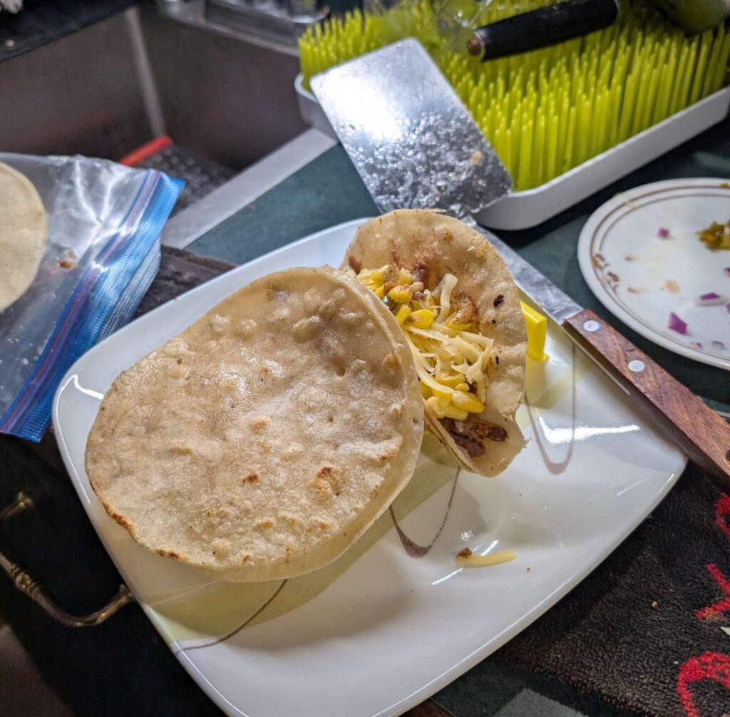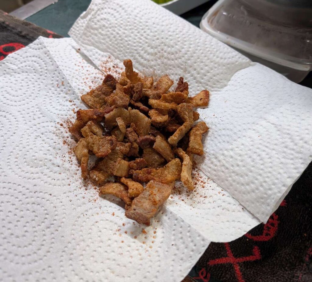 Posted in Article how-i-make-pork-belly-tacos-2025-05-22 2025-05-27 Leave a Comment on how-i-make-pork-belly-tacos-2025-05-22 pork belly. like think bacon. fried crispy so it tastes somewhat like chicharrons. then into tortiallas with the appropriate fillings. spinkled on some Tajin and chili podwer2 folder-over crispy + 2 soft double tortillas