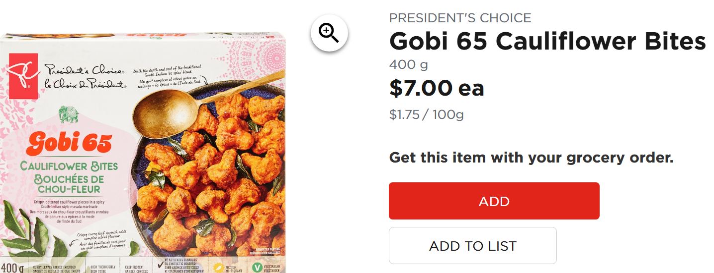 gobi 65 cauliflower bites (frozen foods)