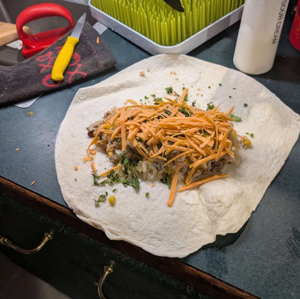 Posted in Article how-i-make-leftrover-burrito-2025-06-13 2025-06-13 Leave a Comment on how-i-make-leftrover-burrito-2025-06-13 leftrovers from the previous burrito run. leftrover rice, corn, refried beans…… cilantro, cheddar cheese…