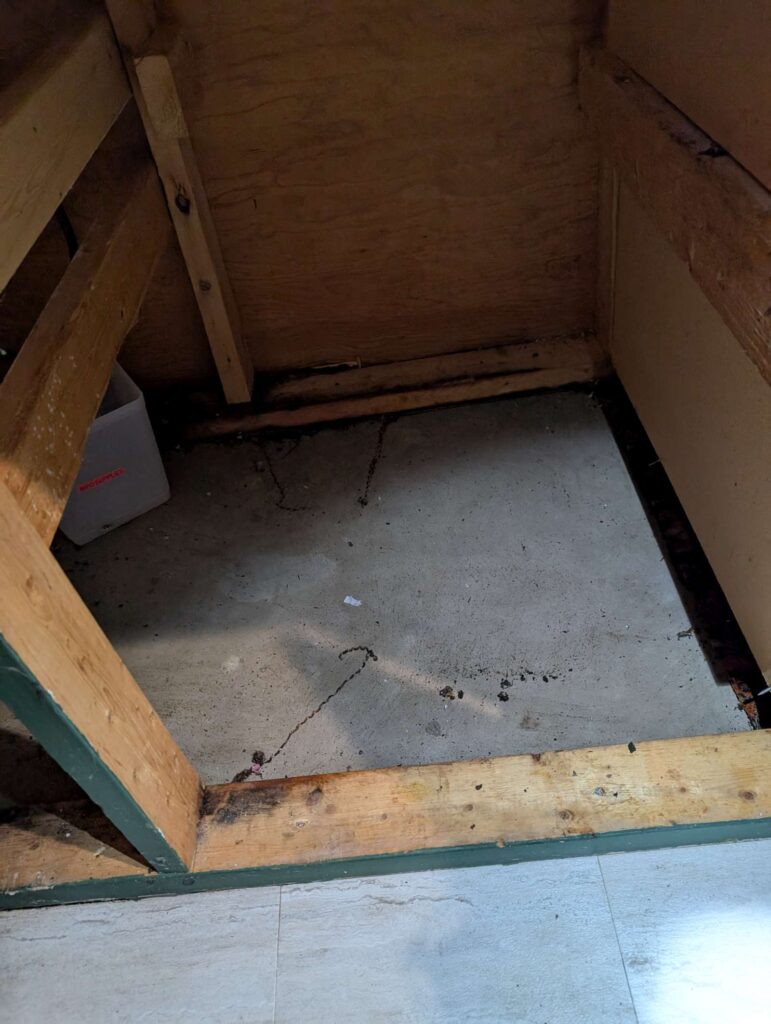 next need to wash, bleach, dry thoroughly, the install new wood (might have sufficient material in the garage. but why? might as well just leave it as concrete?