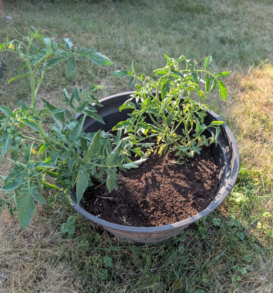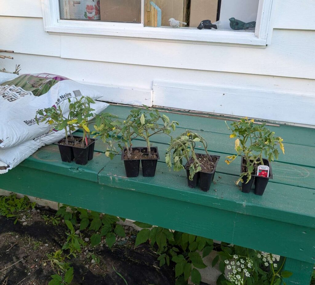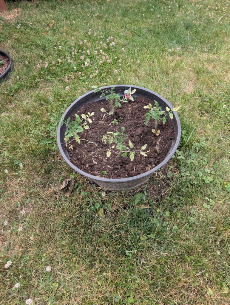 — 2025-06-26 – Wednesday – planted in pots. that’s 15 tomato plants (one was just a single leaf that didn’t thrive). we are gonna have a shit load of tomatoes!