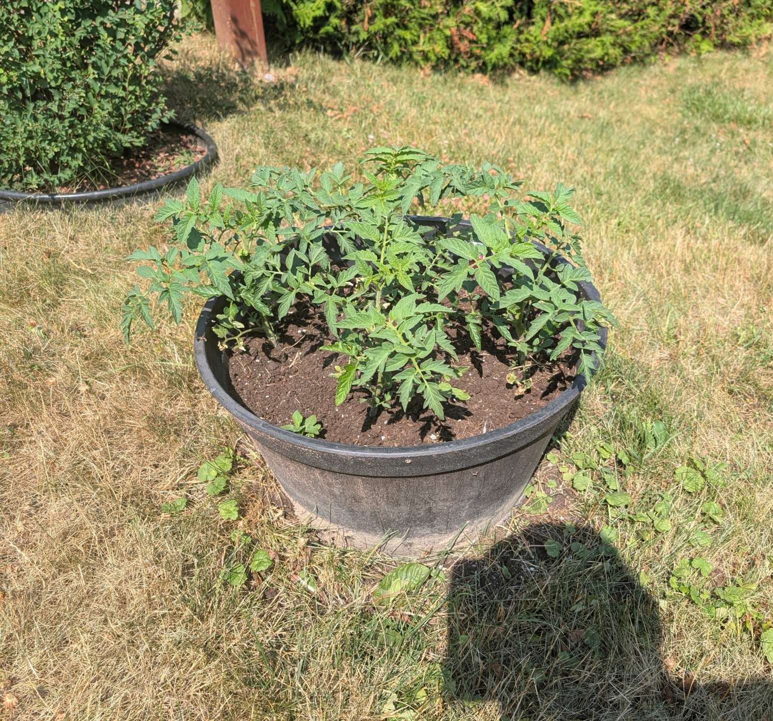 !!! might consider killing 2 plants per pot, since these are both expected to by ~3′ diameter plants.