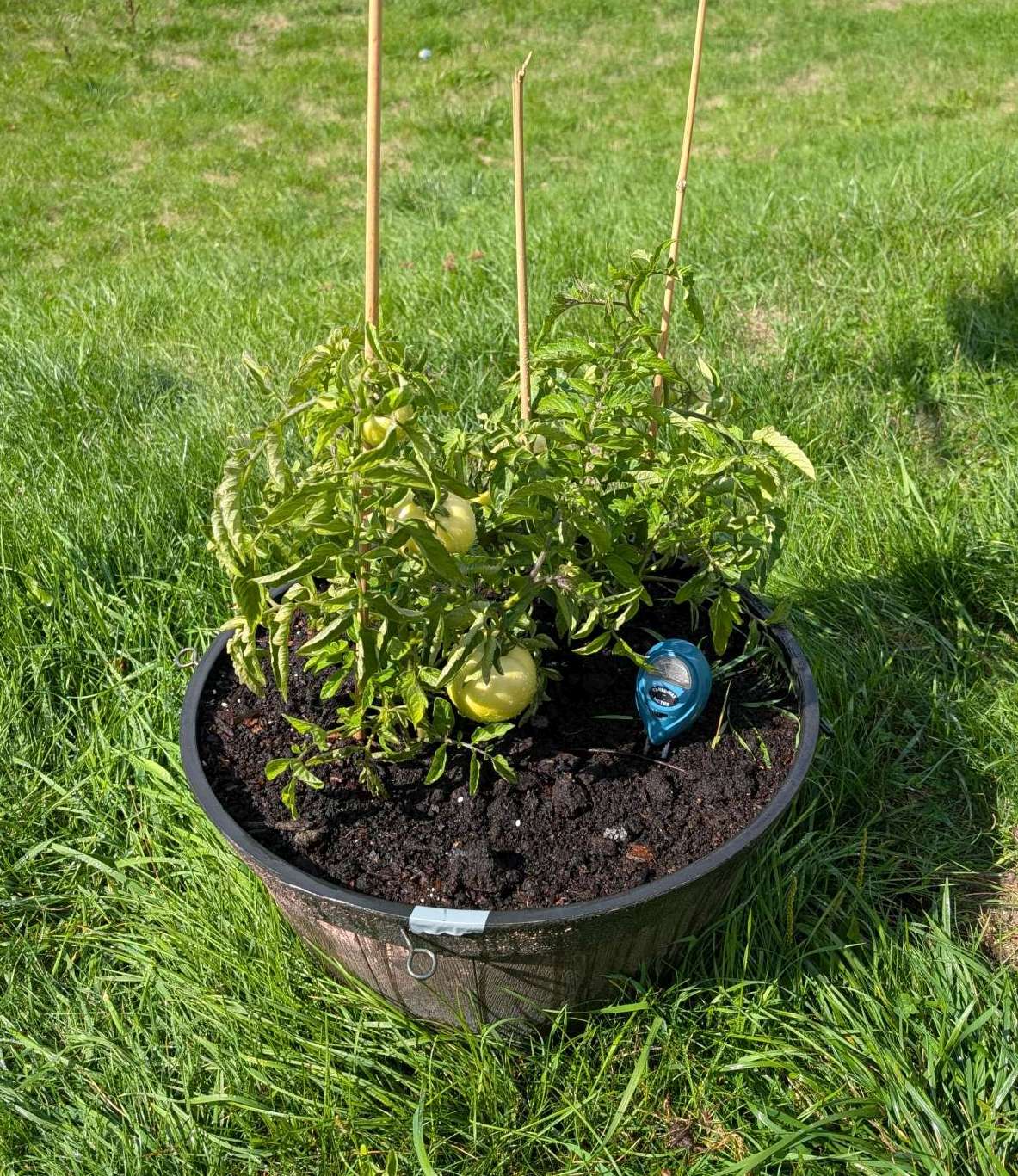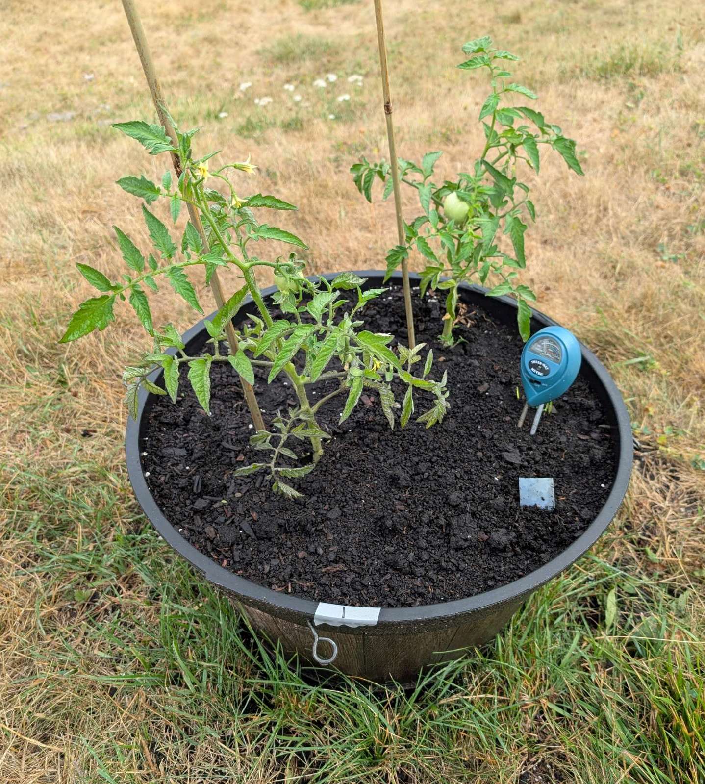 — 2025-08-09 – Saturday – day 45 – watered; added stakes, not yet needed but ready.