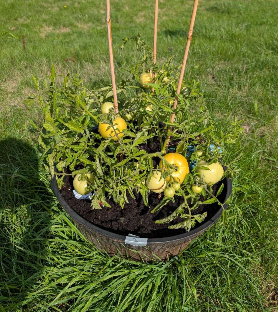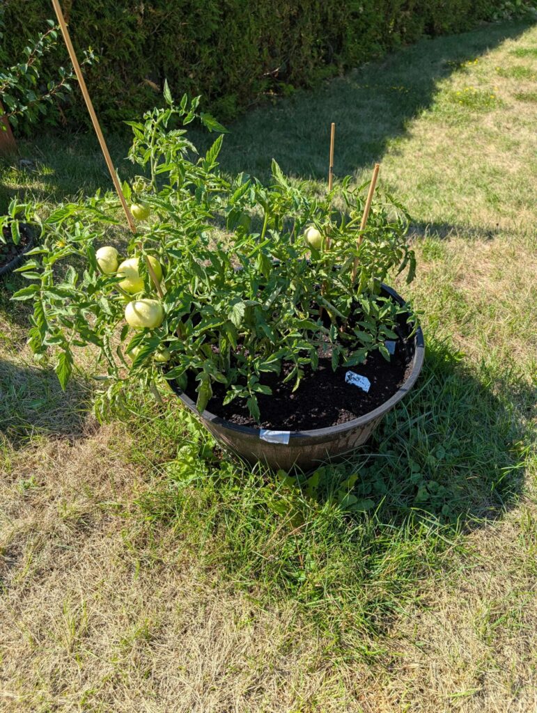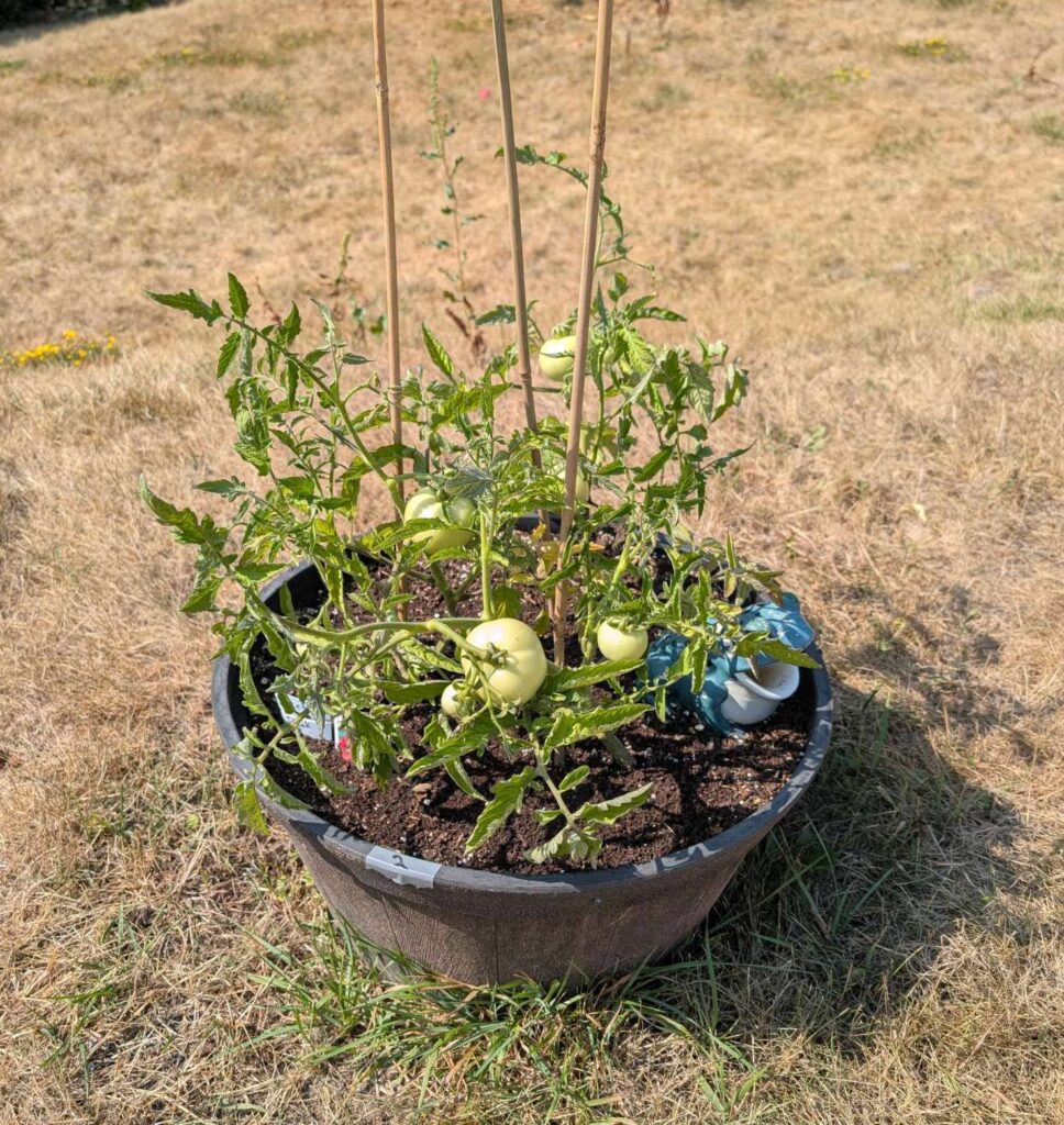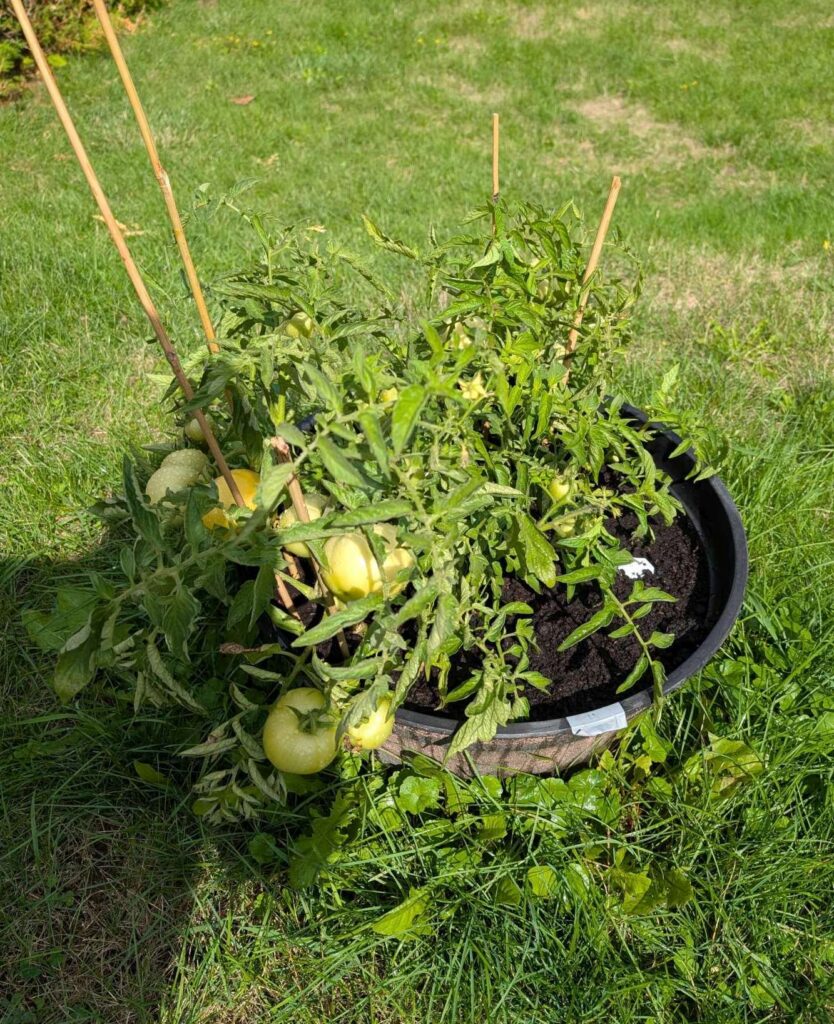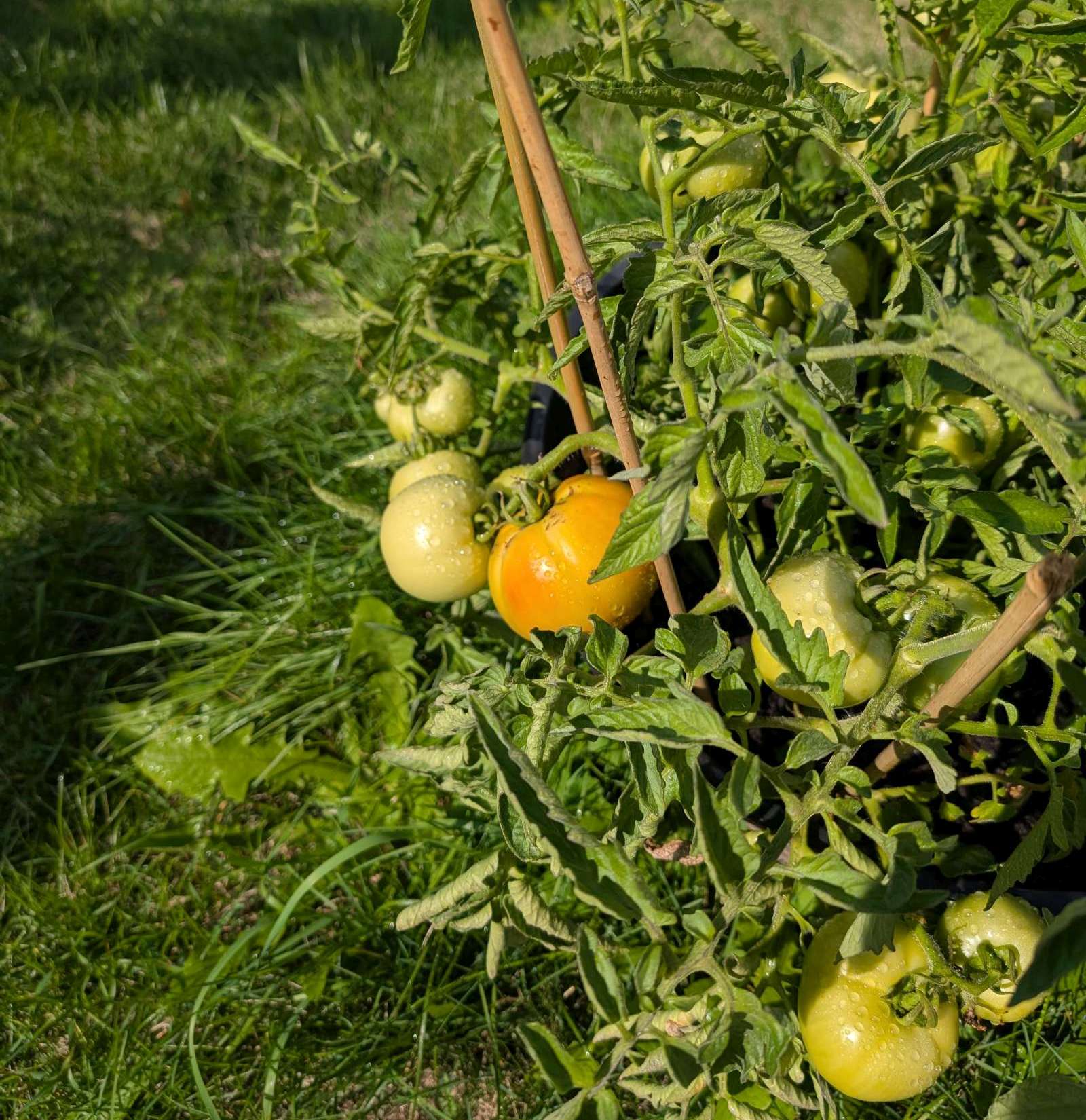 — 2025-09-08 – Monday – day 74 – watered; a few tomoatoes are showing a bit of colour!