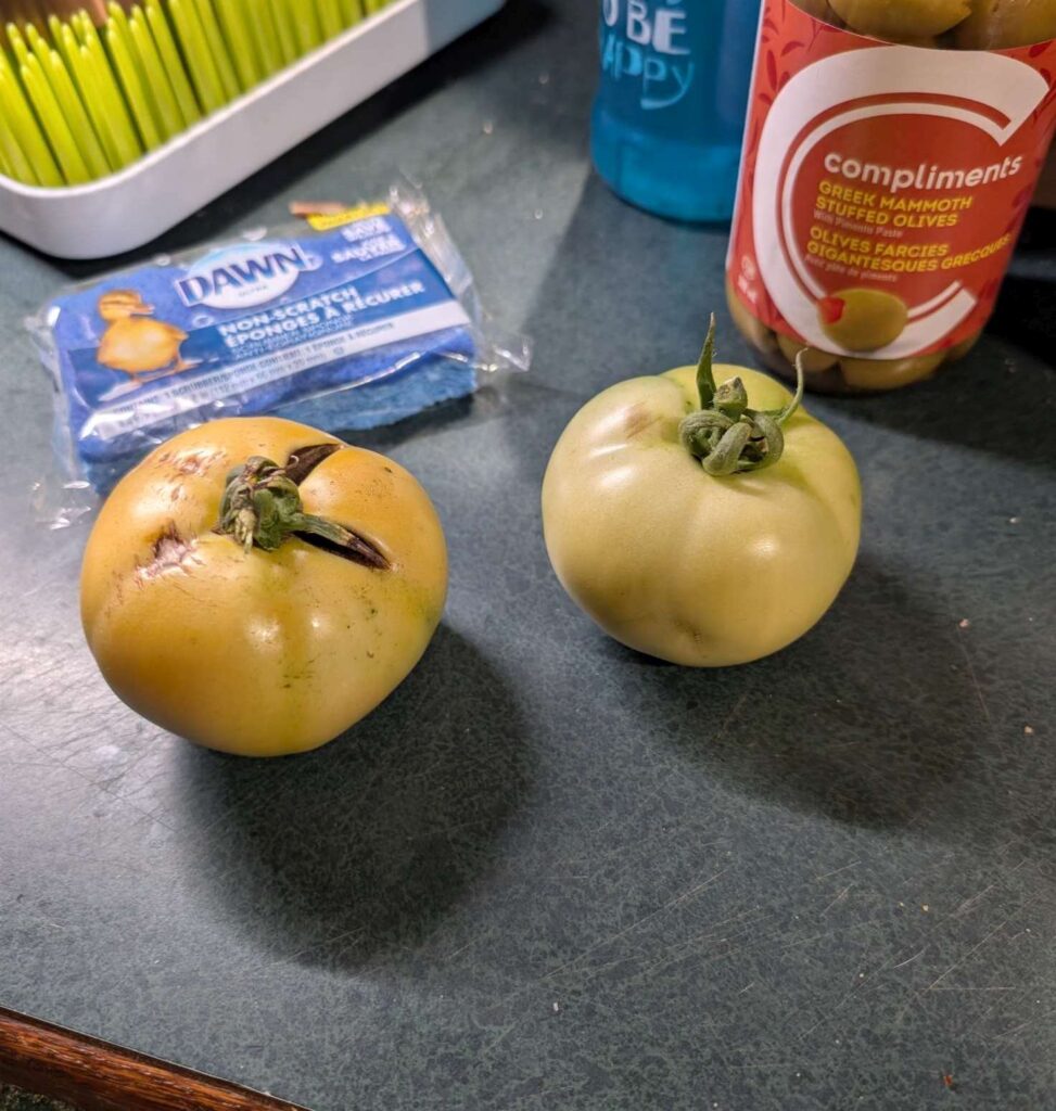 — 2025-09-11 – Thursday – day 77 – watered; took 2 green ones for Fried Green Tomatoes.