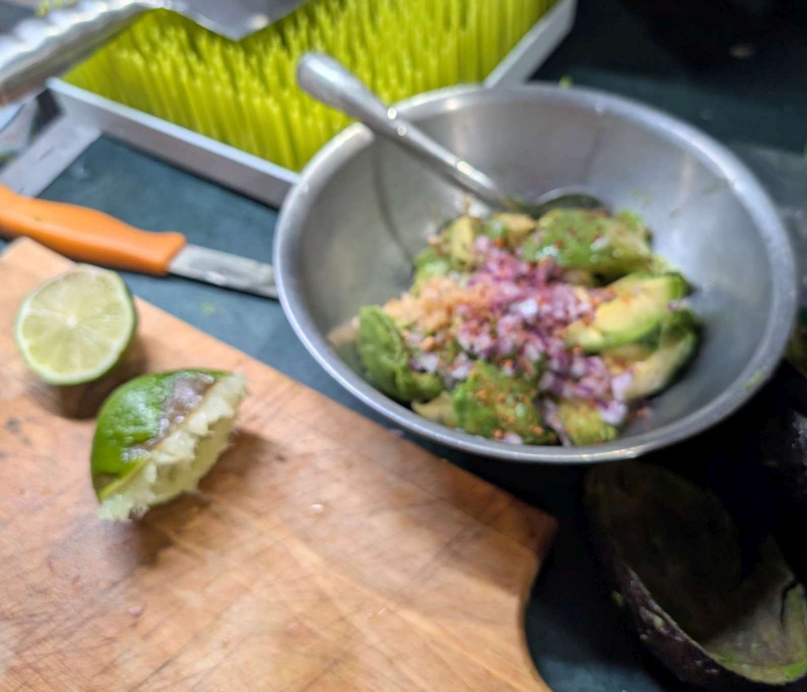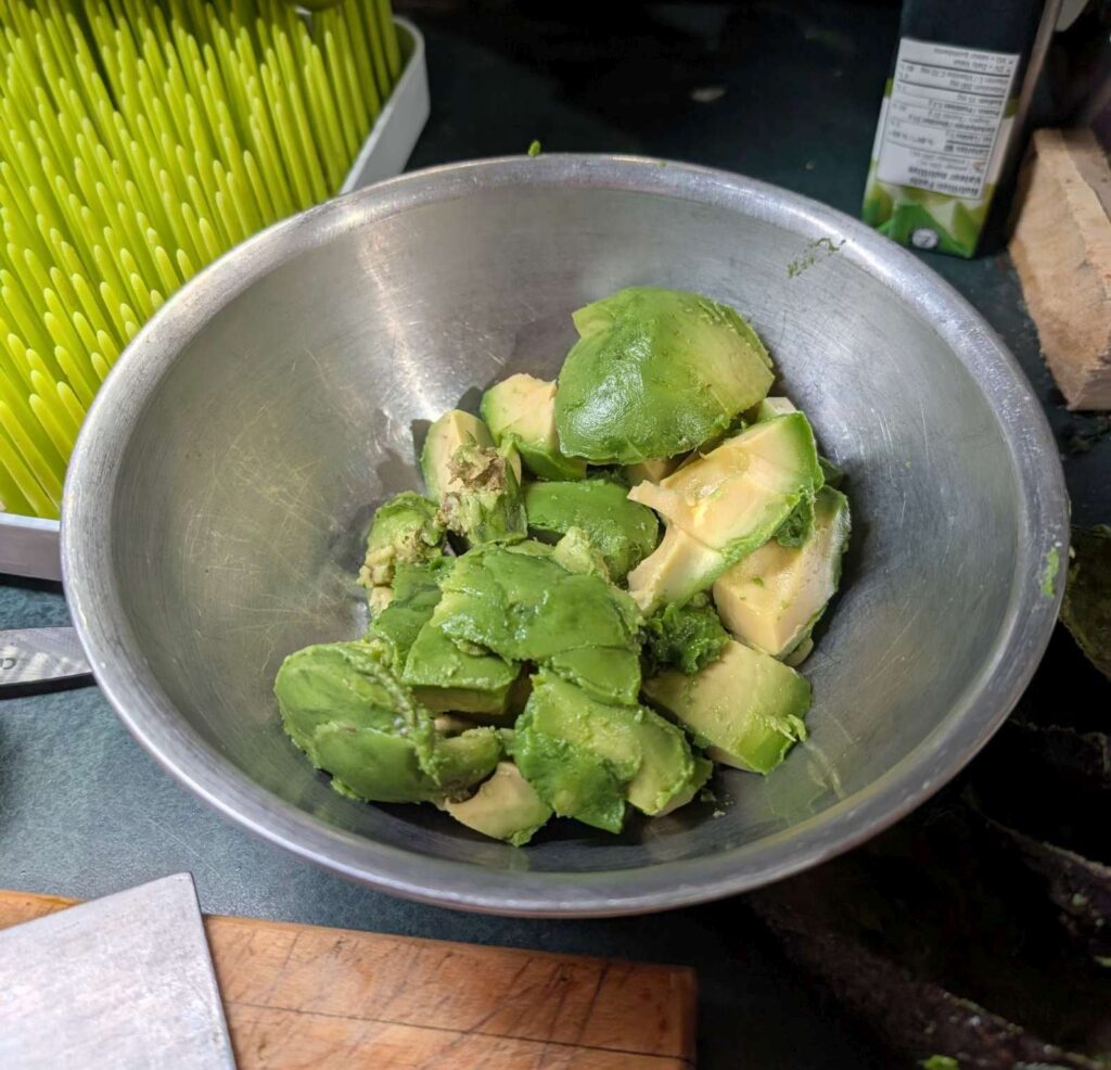 2 perfectly ripe avocados, diced using the hedgehog method…