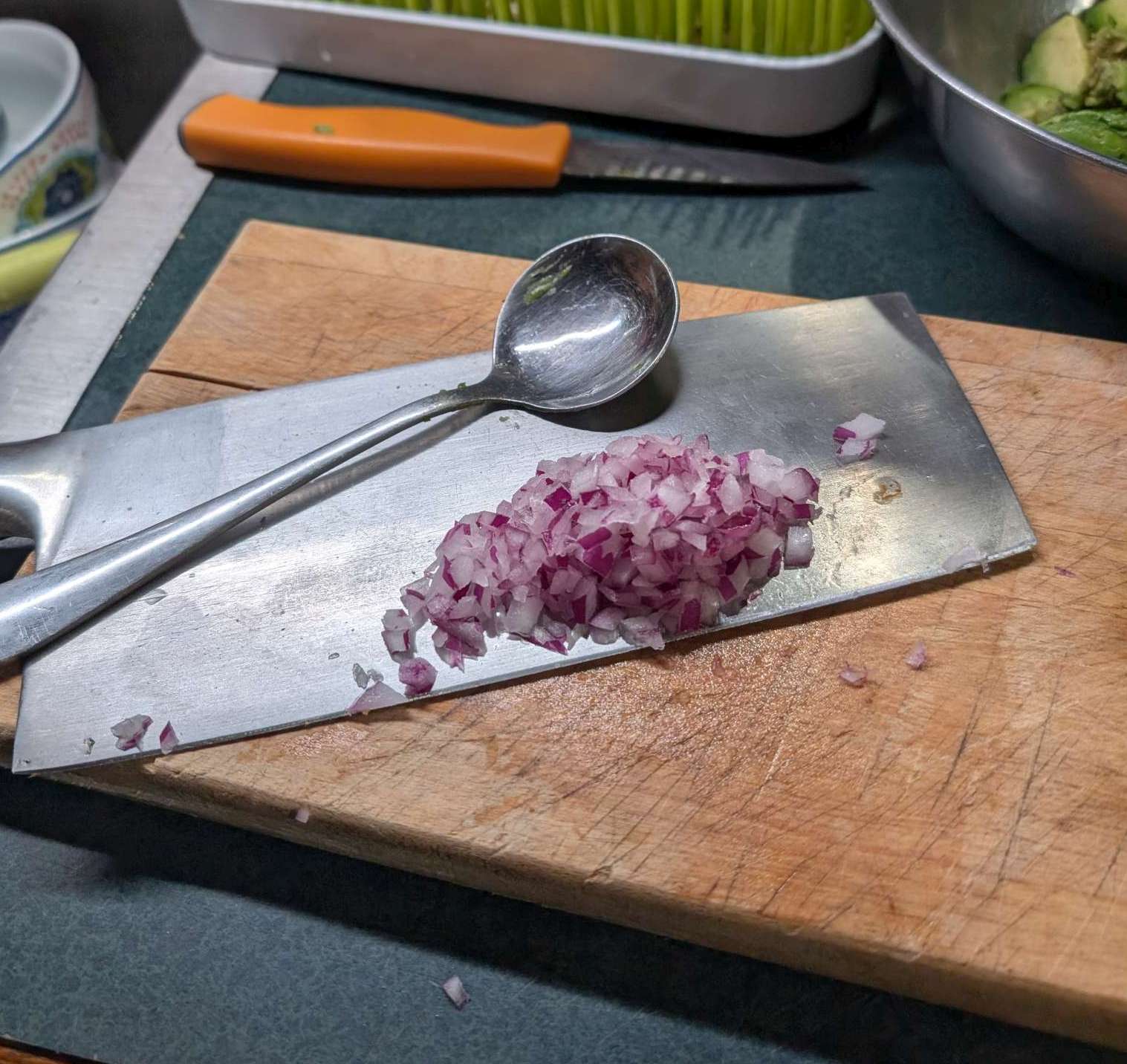 ~2TB finely diced red onion…