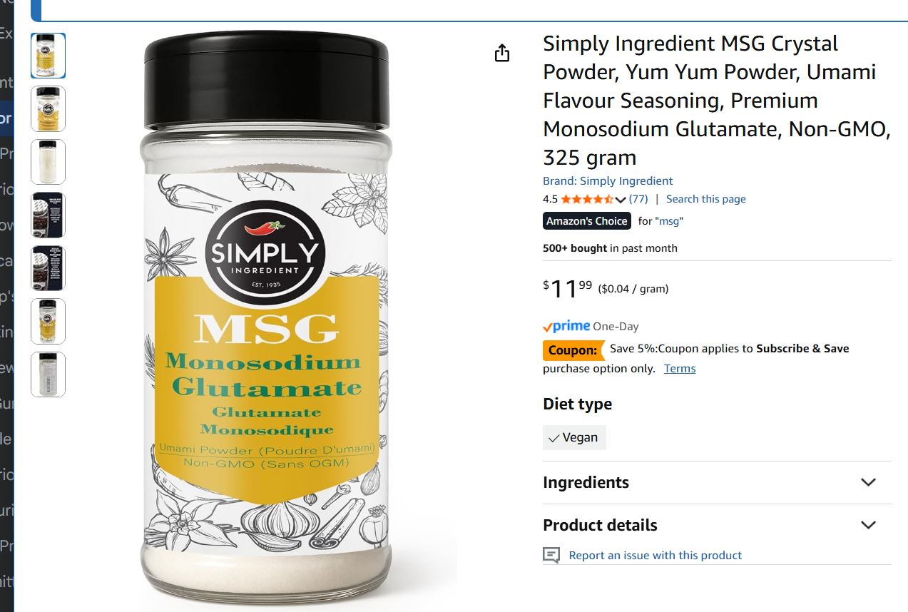 watched a few youtubes suggesting adding it to everything, like a third (salt pepper msg); recall the overly hyped and likely less than true for most “chinese food syndrome”; here’s the soc file entry: