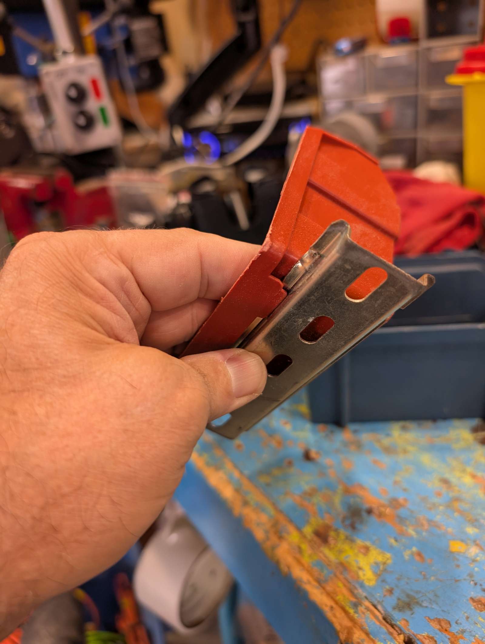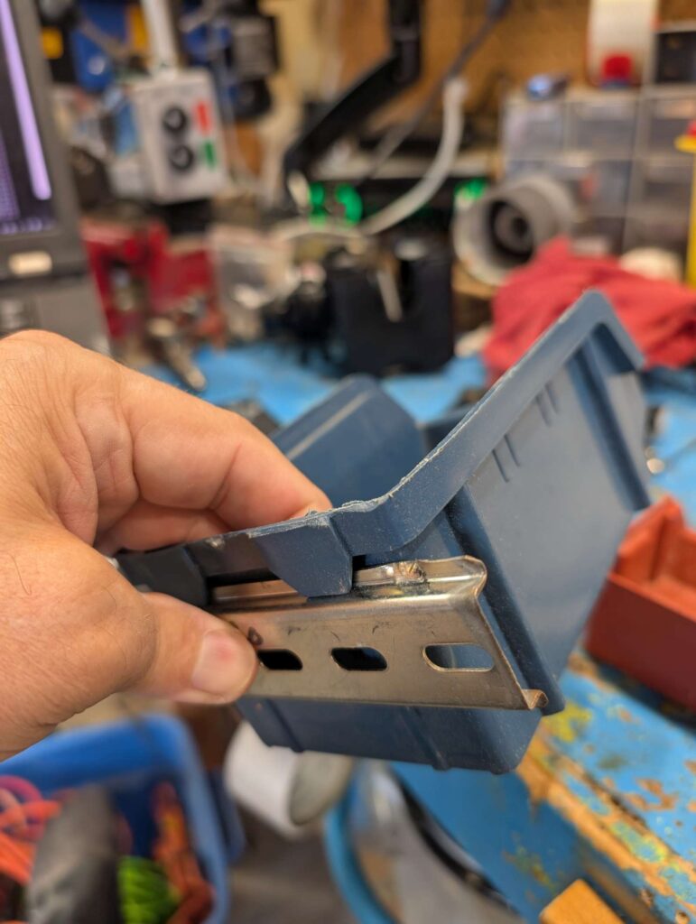 test din rail as mount for red & blue wall storage bins; appears to work perfectly; will order/get some din rail