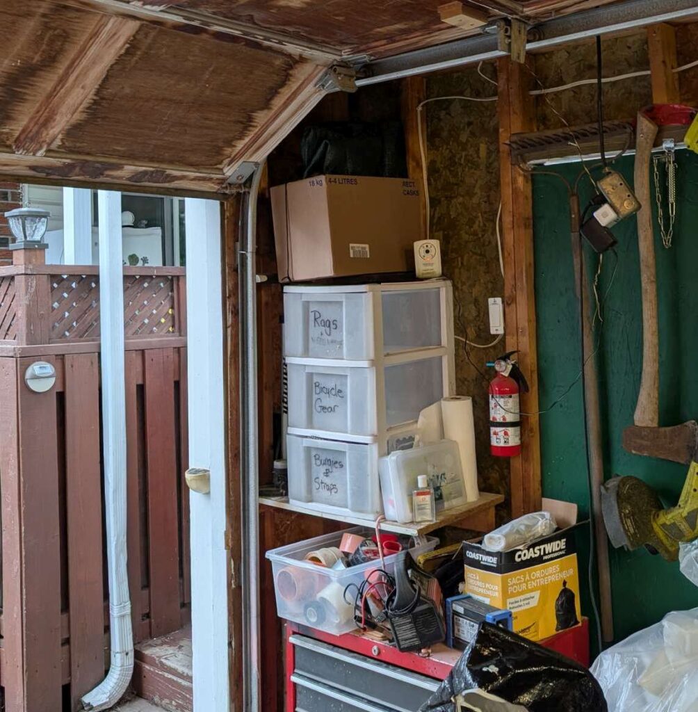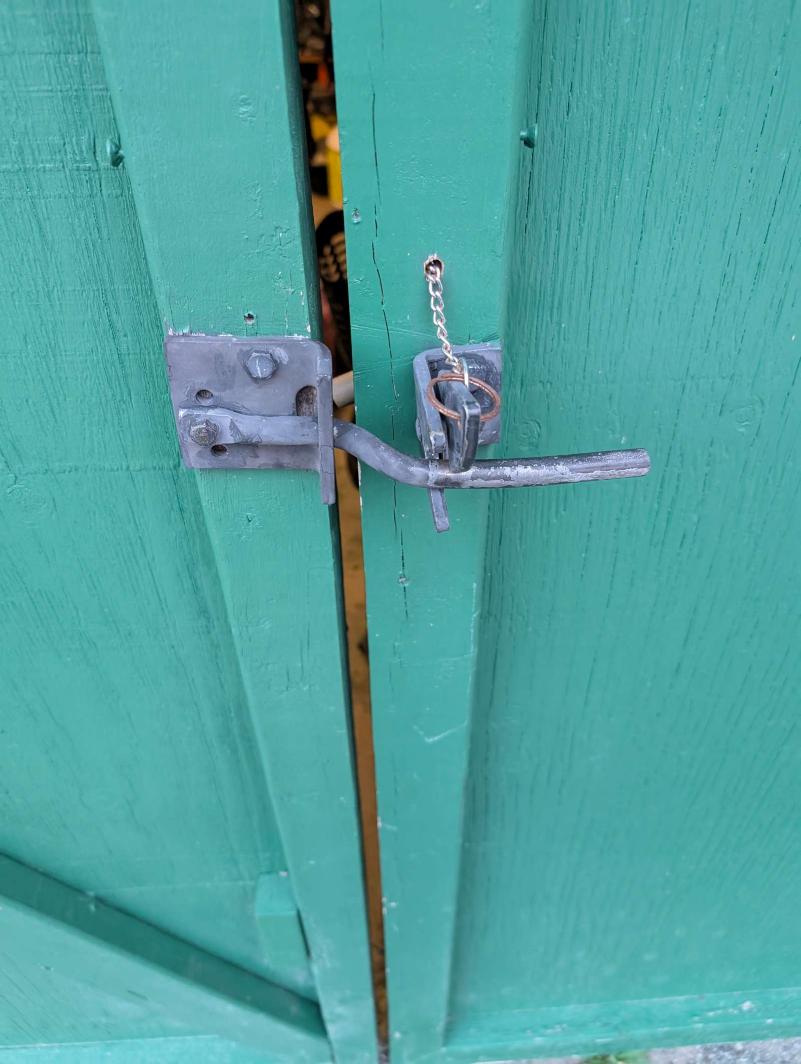 fix garage side door latch; doesn’t always catch. adjustment? maybe add a bit of mass to the latch so it wants to close more?