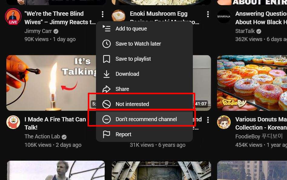 ai slop defence on youtube – – mark the crap as “Not interested” and “Do not sow this channel again”.