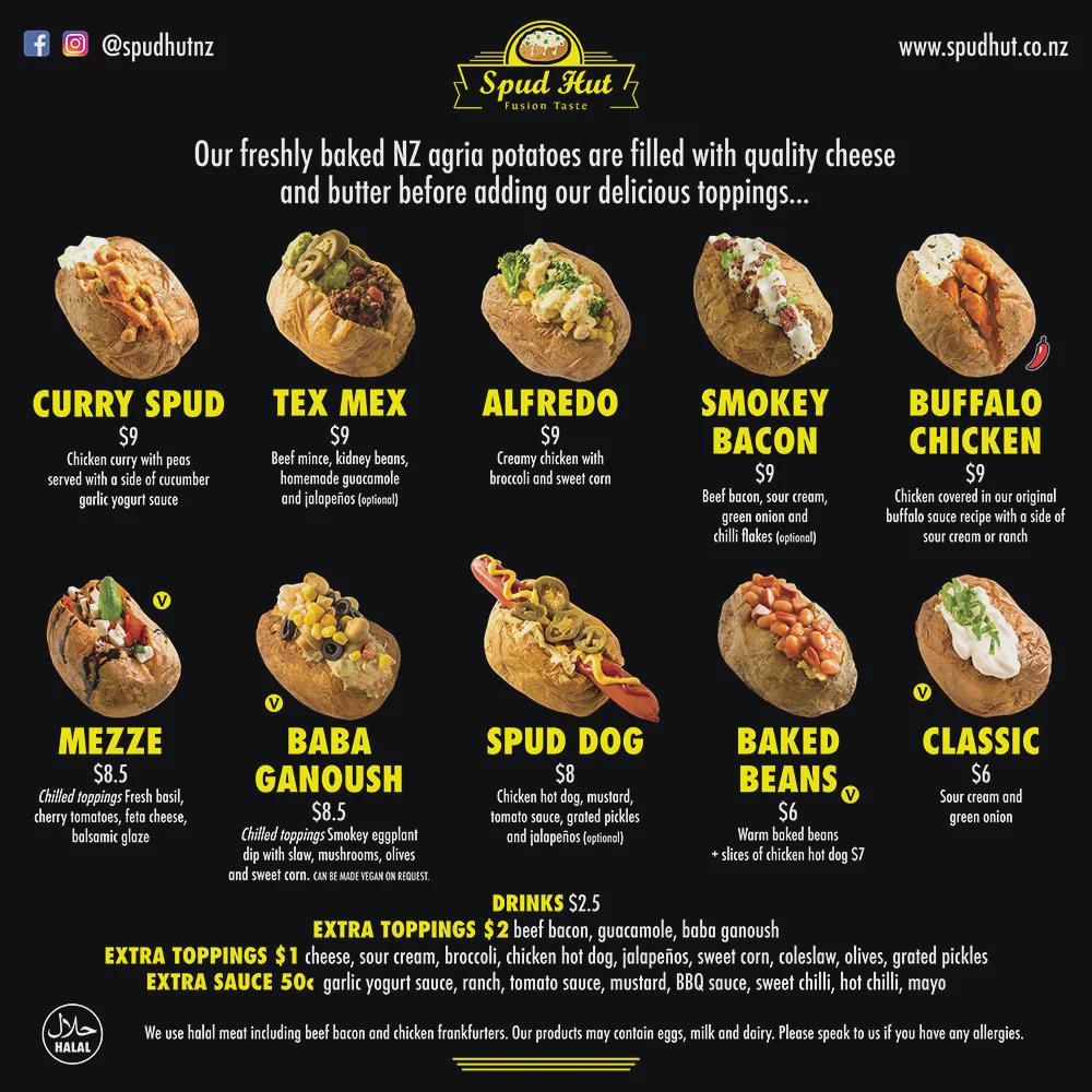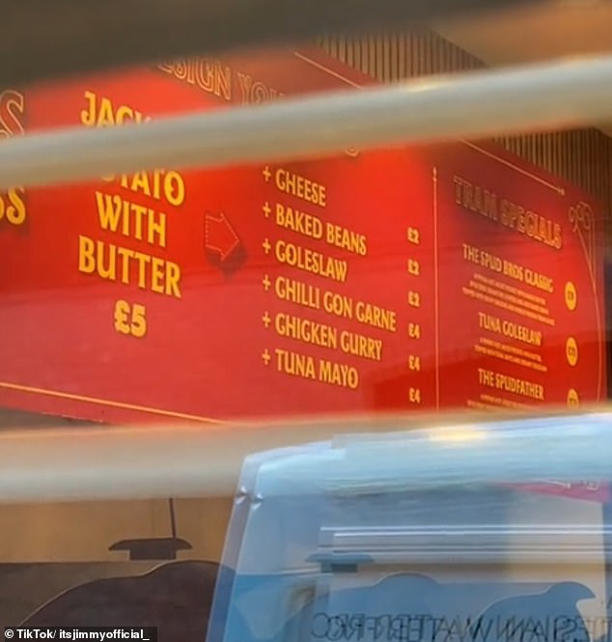 “jacket potato” = baked potato + fixings. i recall when I stayed in London for a few days on trip back from India, seeing signs for “jacket potatos” everywhere. had to ask and found out it’s just a baked potato with toppings. here’s their menu; that UK9 = C$16.65 (base potato + chili) is a bit costy…