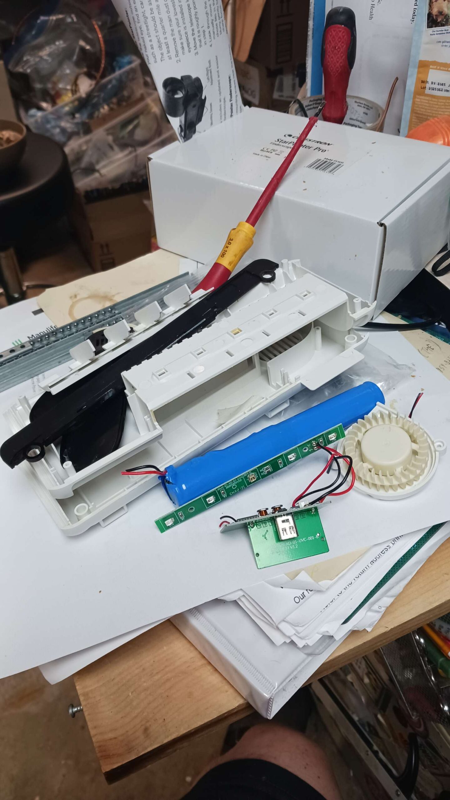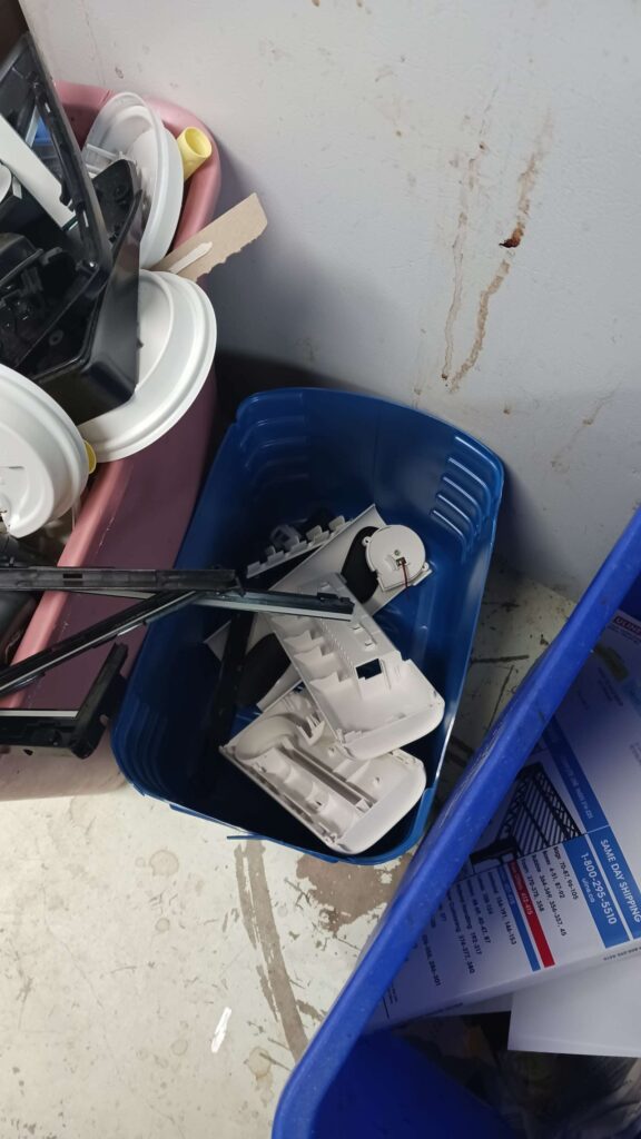 someone left behind a toothbrush sanitizer; took apart, disposed of poart in proper bins.