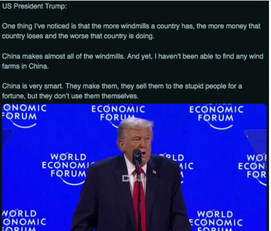 Posted in Article trump lie: china wind power non-existent 2026-01-21 Leave a Comment on trump lie: china wind power non-existent at davos, tfg said this lie: here’s the world rankings of wind power, 2023 (china is now ~600MWh in 2025)