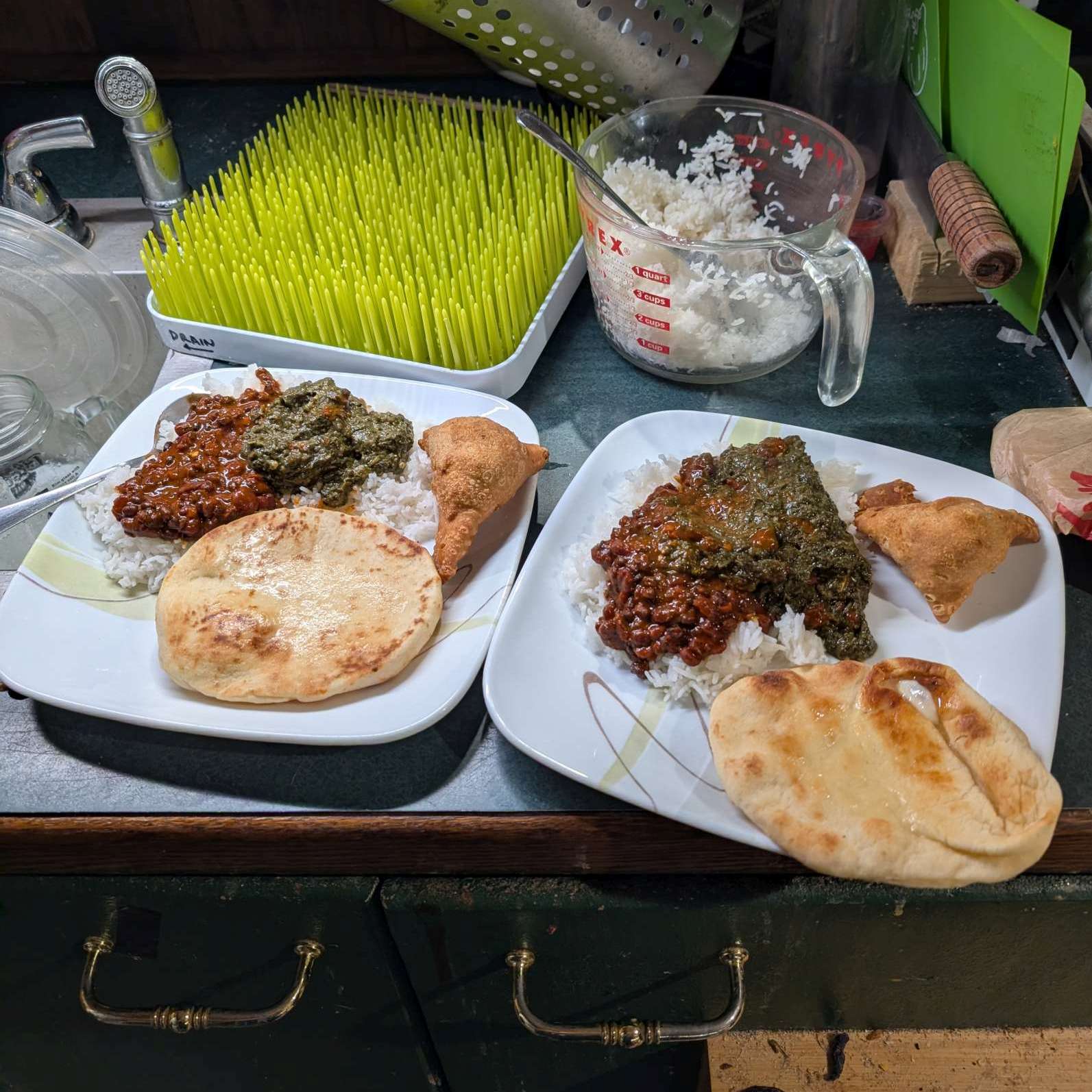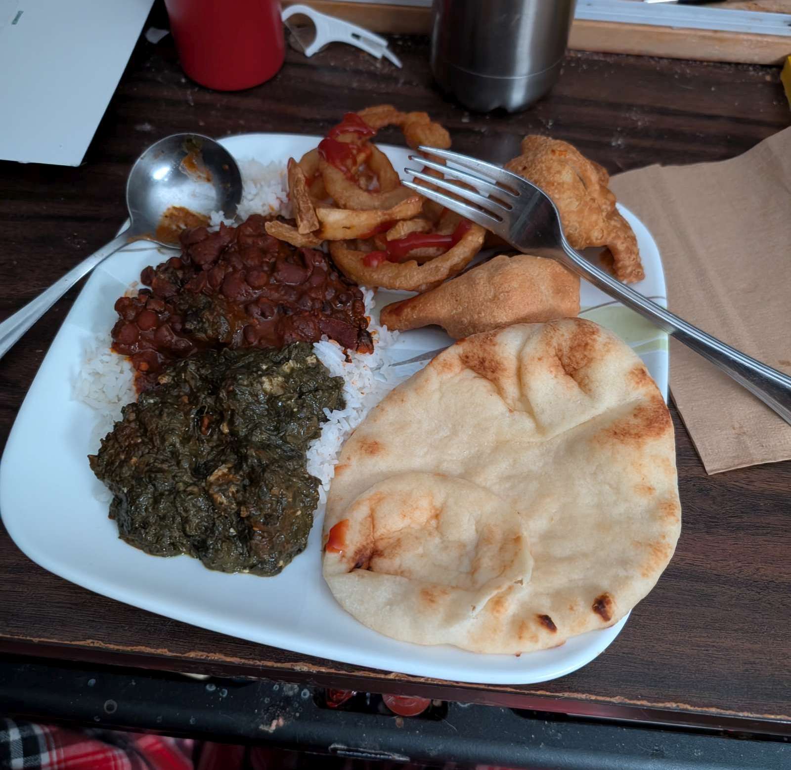 picked the dal mahkni and mattar paneer. 2/5ths of each on a bed of basmati rice, 1 samosa, 1 mini naan.