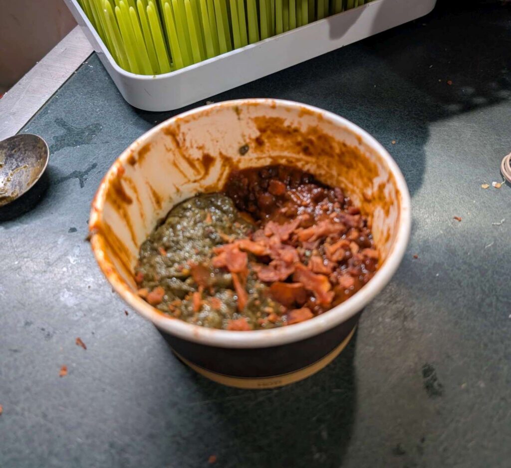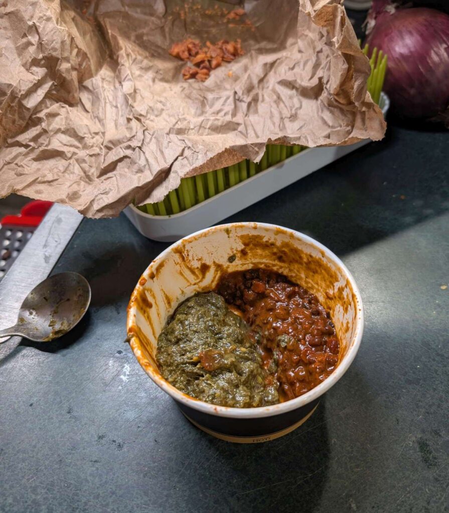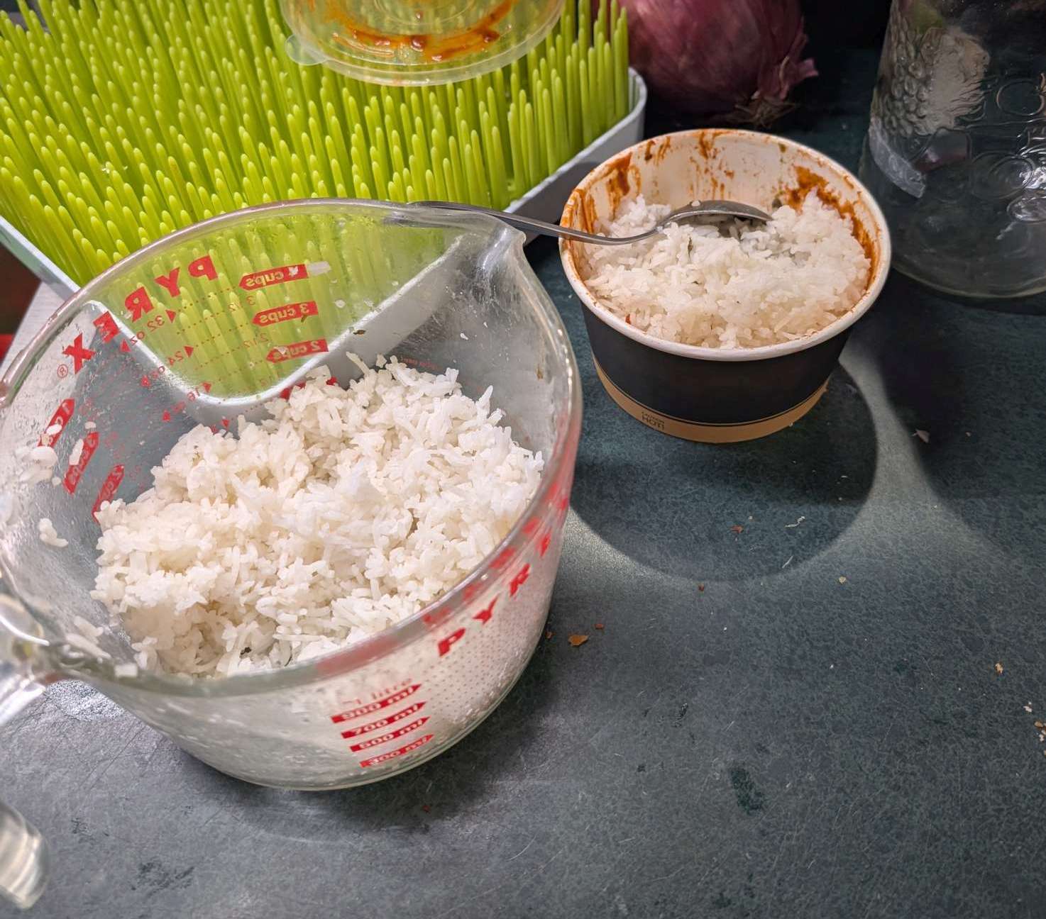 leaving a single meal from the last 1/5th of each dish + remaining 1/3rd cup of rice.