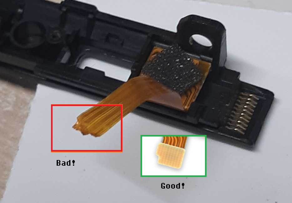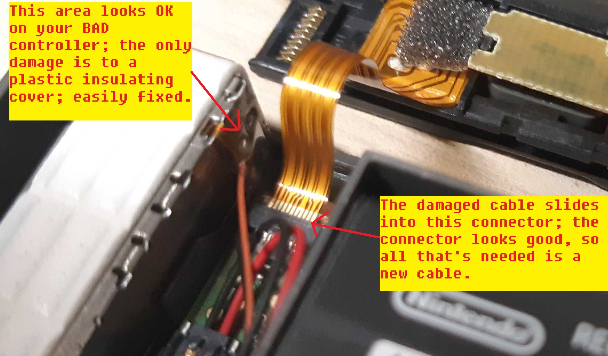 This is what the end of your BAD controller’s cable looks like; it should look like the Good! one on the right: