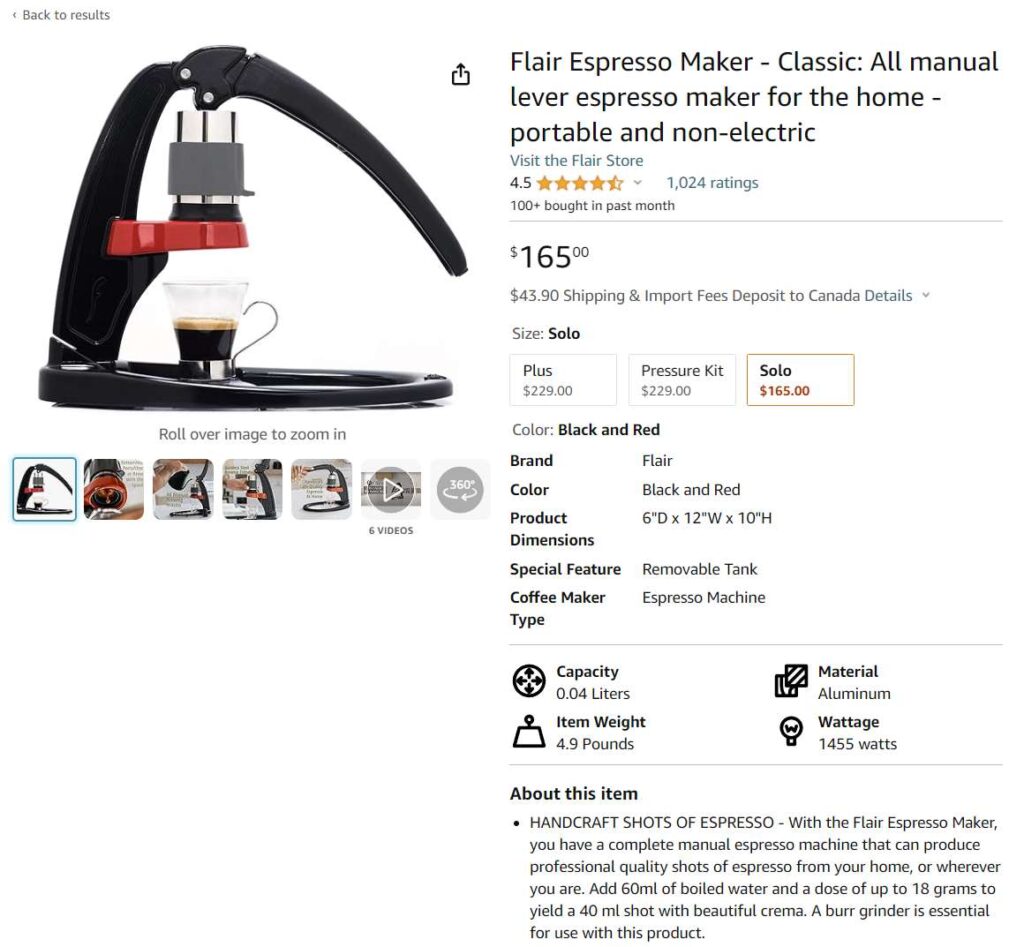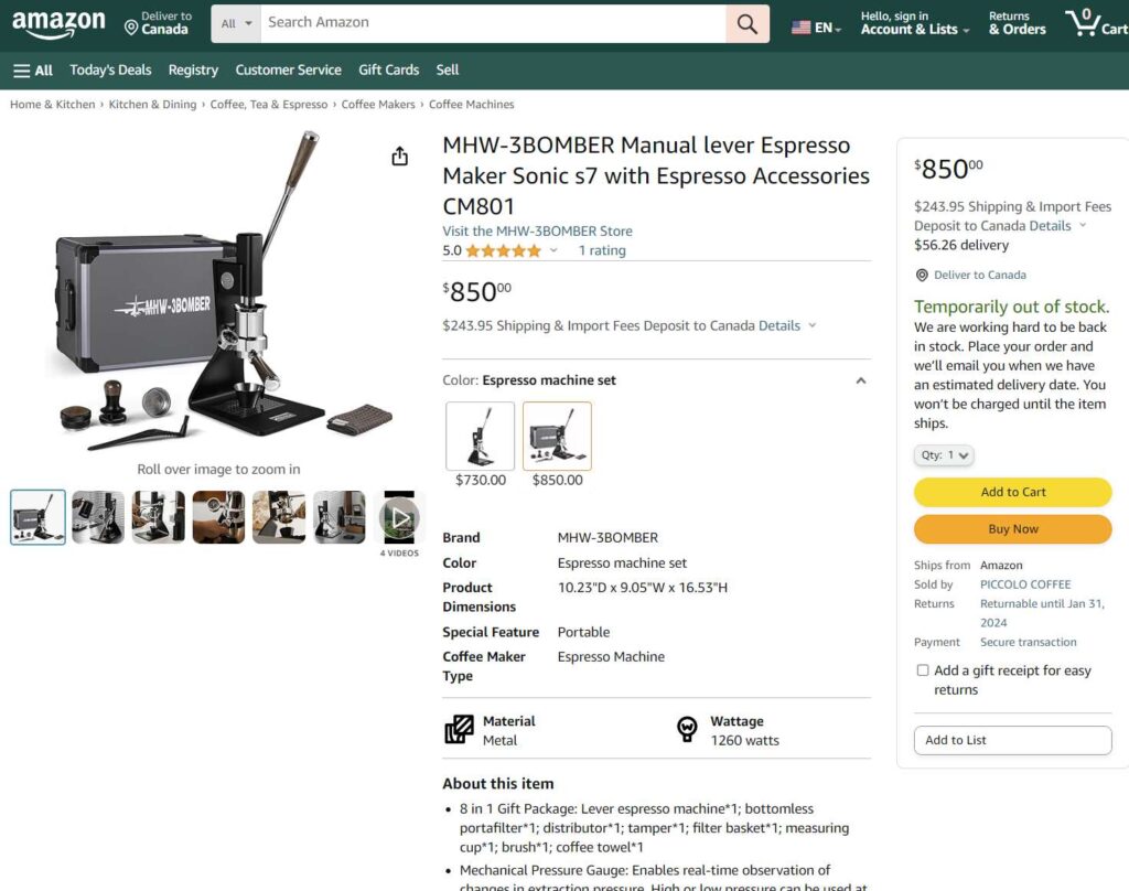 2023-12-14 – here’s a manual lever machine. La Pavoni Europicolla Lusso. So simple. “Euro” “Picolla” “Lusso” just screams espresso to me. $CDN~1K is pretty steep. Video here maybe. Or on the website.
