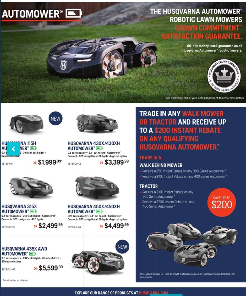Want: Robotic lawn mower 2020-05-26 Leave a Comment on Want: Robotic lawn mower Husquevarna (?) has a well-regarded line-up: https://www.husqvarna.com/ca-en/products/robotic-lawn-mowers/automower-535-awd/967853405/