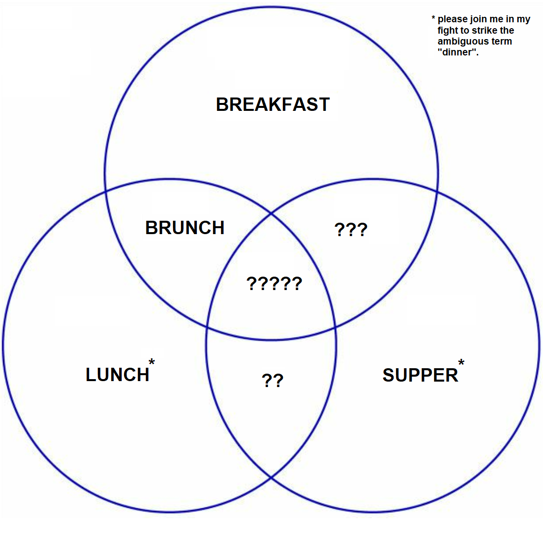 And should there be a word for the intersection of all three meals? Does anyone actually eat this combo?