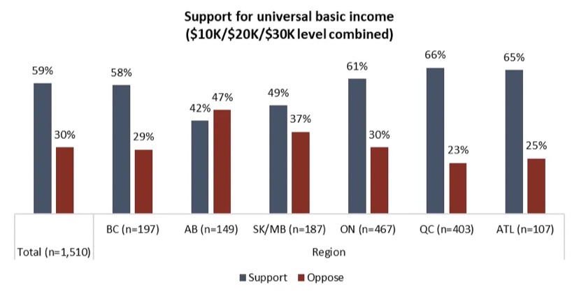 Posted in Uncategorized 3 in 5 Canadians support universal basic income as high as $30K/year: poll 2021-01-28 Leave a Comment on 3 in 5 Canadians support universal basic income as high as $30K/year: poll According to the Angus Reid Institute, 59% of people in Canada support universal basic income, with the highest level of support in Quebec. Source: 3 in 5 Canadians support universal basic income as high as $30K/year: poll